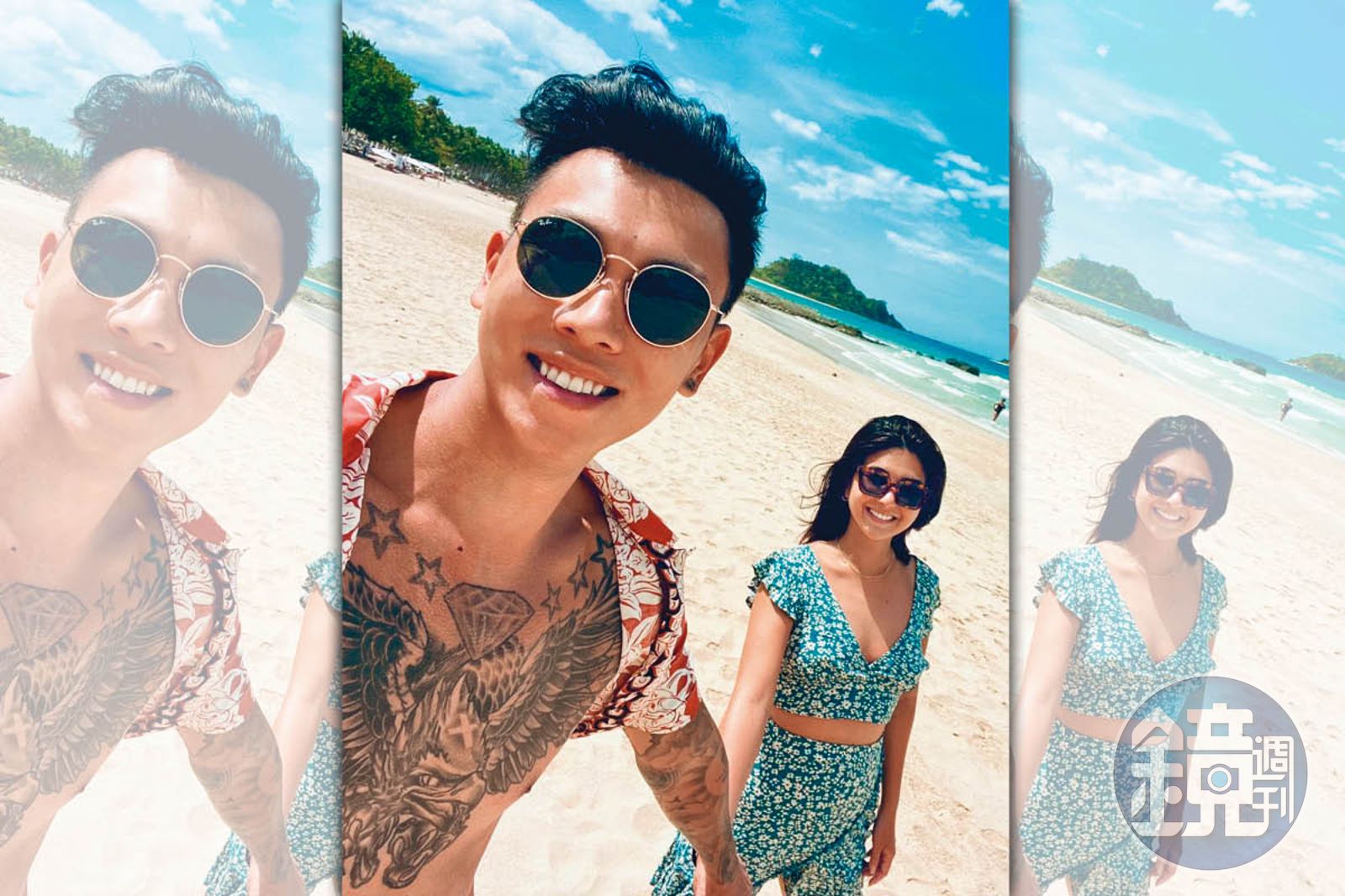 接著瘦子與女友走到店門口外哈菸,他刺完青直接赤裸上身,既率性也沒想遮掩,直接當街露點,並且放送自己的肌肉線條;女友在旁也是大剌剌的,絲毫不以為意,可見2人私下活動比起一般當紅偶像,可說是毫無包袱。