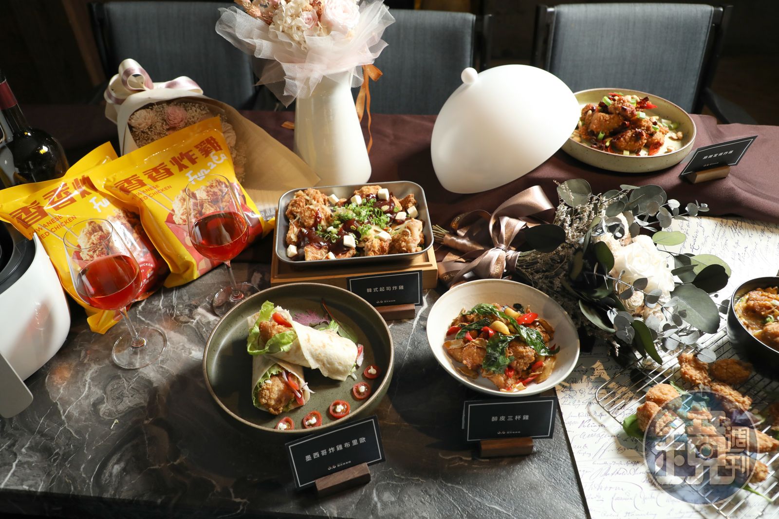 更進一步試吃,發現冷凍的香香炸雞,味道沒有店裡吃的那麼重,好處是買回家可以自由發揮,發現炸雞的一百種可能。除了基本款的蒜香鹽酥雞,也能各自發揮想像力,把已經調味好的香香炸雞,換成各種國籍外衣,例如包入墨西哥捲餅、淋上蛋液做成日式親子丼飯,或添上花生、醬汁做成四川口味的宮保雞丁等,也可以學吉克主廚(Jeek)加入韓式辣醬起司,變身韓風炸雞,無論哪一種,幾乎都能完美融合。