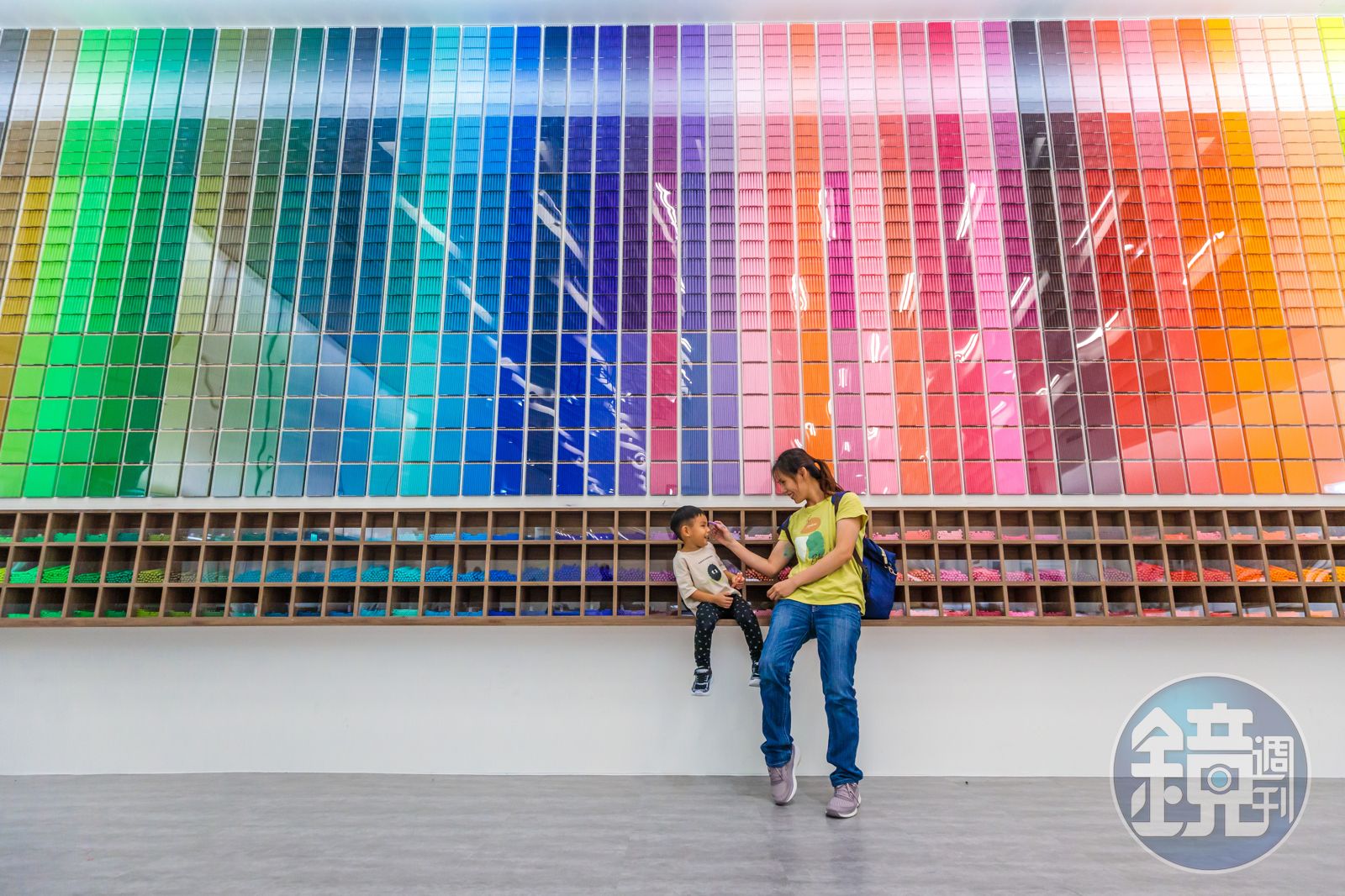 最夯的區域是一面「60色色彩牆」,以粉蠟筆、色鉛筆及彩色筆,共76,800枝筆的組合,打造出漸層色系的氣勢牆面,成為遊客爭相拍照打卡的聖地。