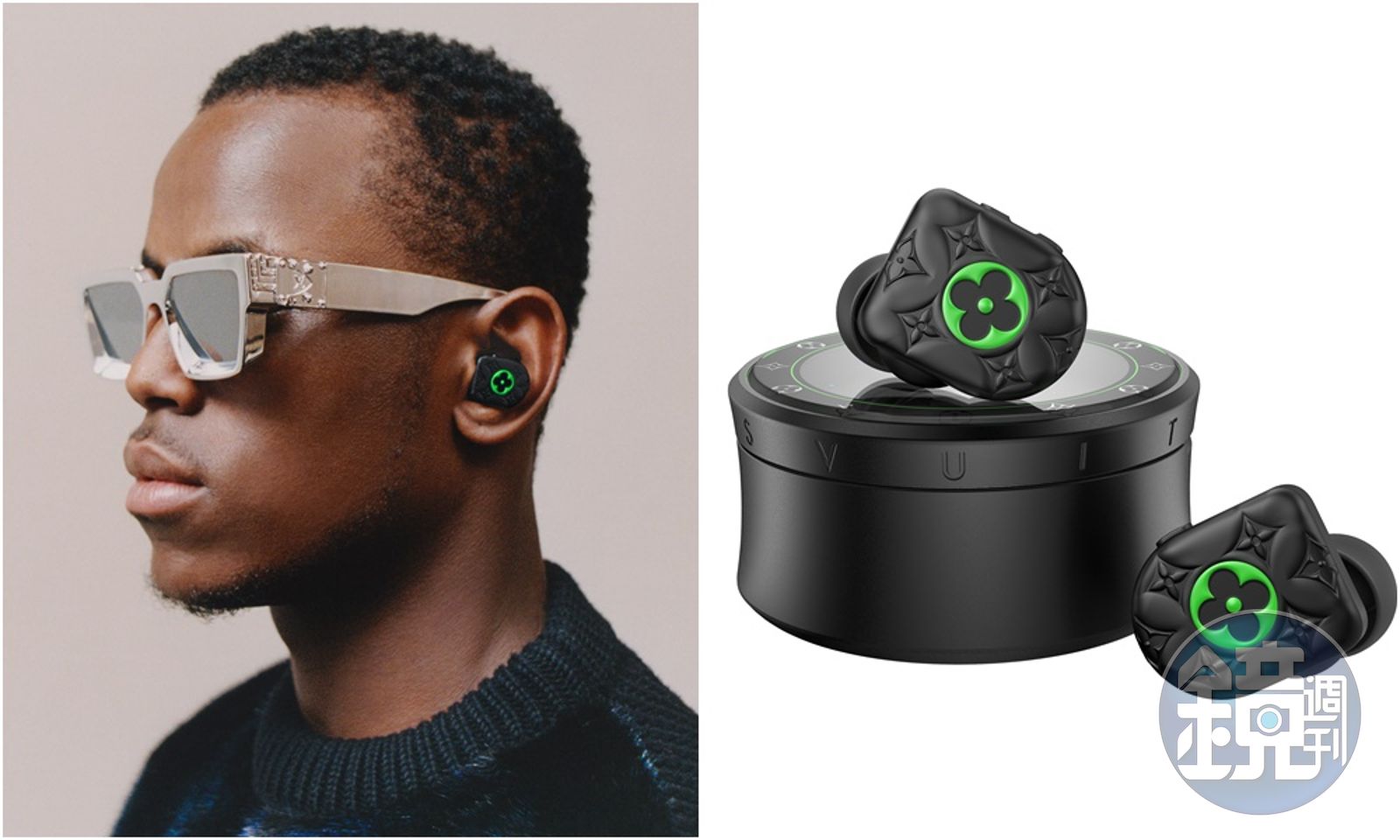 路易威登男裝藝術總監Virgil Abloh親自設計的螢光綠搭配啞面黑色Horizon無線耳機,耳機可以連續運作30個小時,充電盒外形擷取自Tambour Horizon腕錶的造型設計。NT$37,000。(路易威登提供)發布時間:2020.11.01 21:32 臺北時間