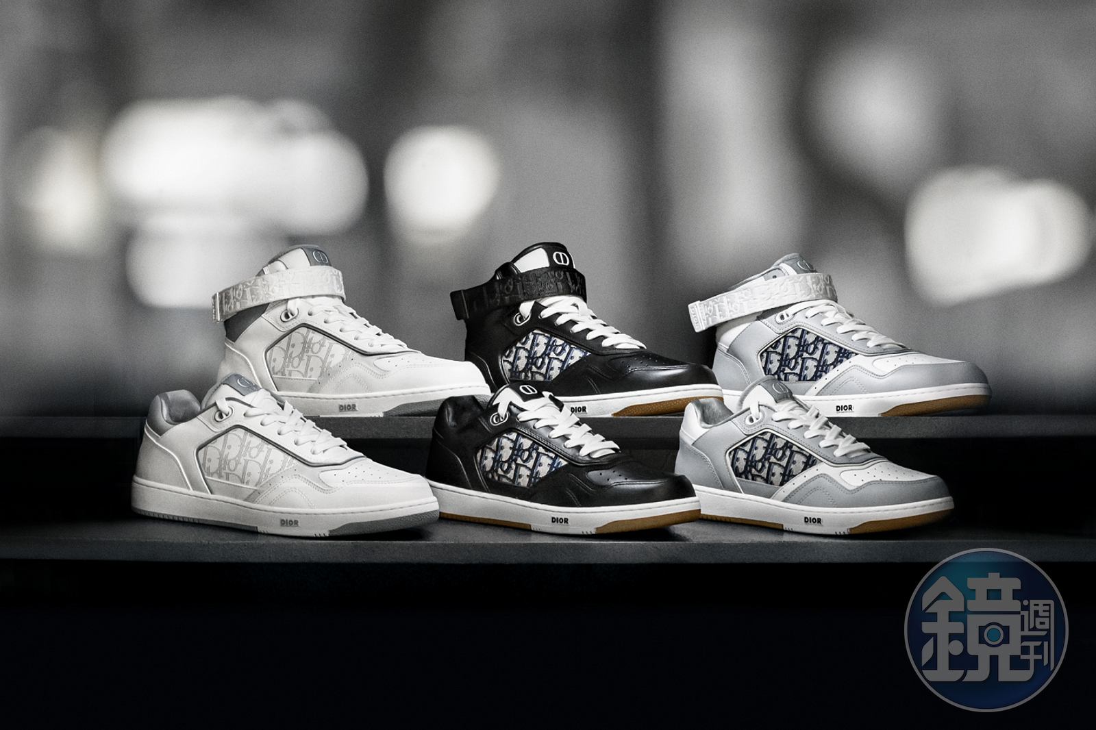 黑色與致敬迪奧先生的灰色款式,皆搭配 Dior Oblique 緹花帆布;白色款則為2021春季系列首次亮相的 Dior Oblique Galaxy雷射雕紋皮革,以前衛新穎的手法演繹經典Oblique紋路。B27從邊緣染色、打磨到縫製,全程於品牌位於義大利的製鞋工坊手工打造,除展現出精湛技藝,獨特3D效果更是創新精神的展現。