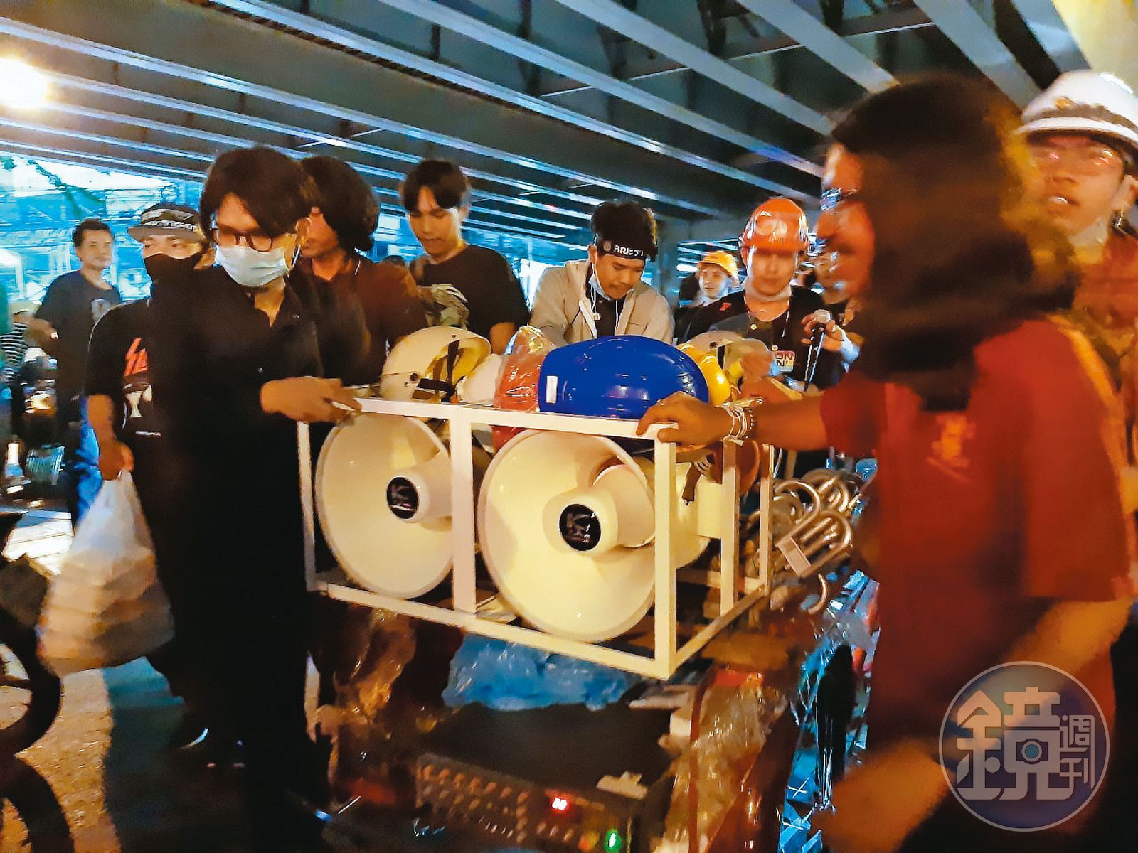 「宣布進入嚴重緊急狀態後,擴音設備的進場更加困難,就算順利帶上場,最後也會被警察沒收。」Por回憶道,「後來就買了這台三輪車,至於上面的設備,志工團隊裡有一些讀工程學院的孩子,從發電機容量、喇叭瓦數和數量,到聲音能傳達的距離,都是他們算出來的。」