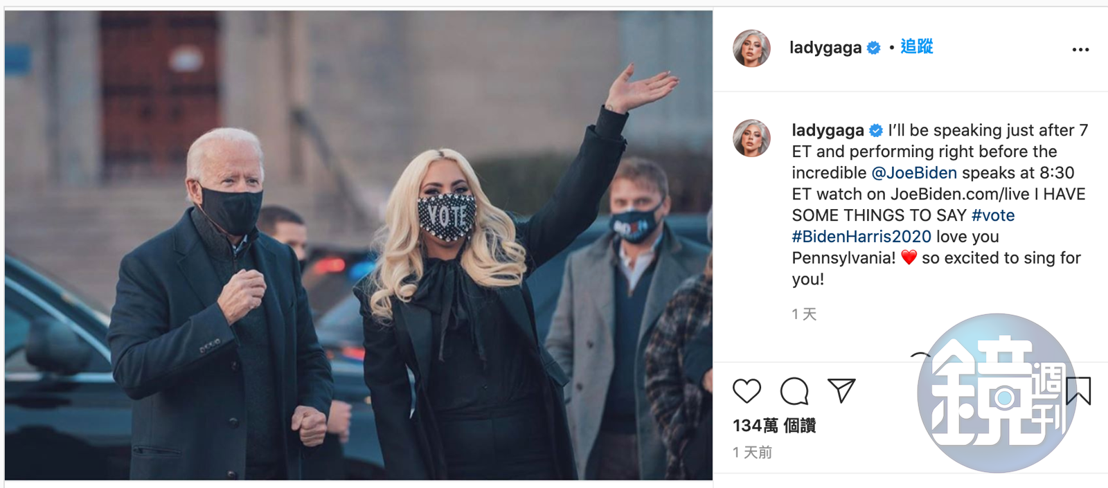 女神卡卡在賓州匹茲堡的活動中,替拜登站台,並且呼籲女性應該投票給拜登,「現在妳都有機會投票反對川普,他認為自己名氣夠大,可以隨便消費任何一個女性。」結果這番言論激怒川普,他隨後在賓州的造勢大會上,直接講女神卡卡的壞話,「卡卡其實人不太好,我可以跟你講很多她的事情,她故事很多,我知道很多女神卡卡的故事。」