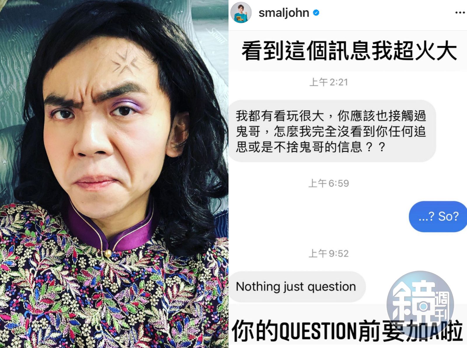 其實黃豪平也有前往小鬼靈堂致意,他自認不需要向這位提出質疑的網友證明什麼,並警告他「請你停止這種行為,如果你還在進行的話。」但氣歸氣,黃豪平對於當他回覆網友「So?」後對方又以英文「Nothing just question」小酸了一下,「你的QUESTION前面要加A啦」!
