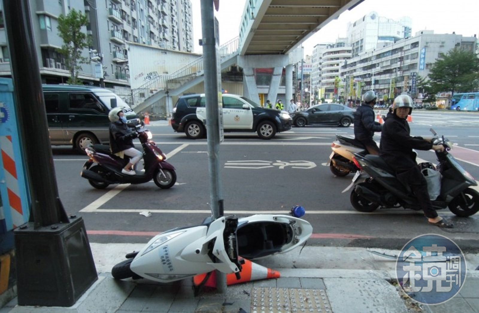 當時,兩人一前一後,緊追不捨,違規自小客車沿途狂奔,一路闖紅燈,兩員警也只好跟著闖!沒想到,楊宗翰闖過自由路、雙十路口的紅燈,與另名陳姓男子的自小客車相撞,他被撞得飛了起來,摔落路旁,幸好只有手腳多處挫傷,並無生命危險。