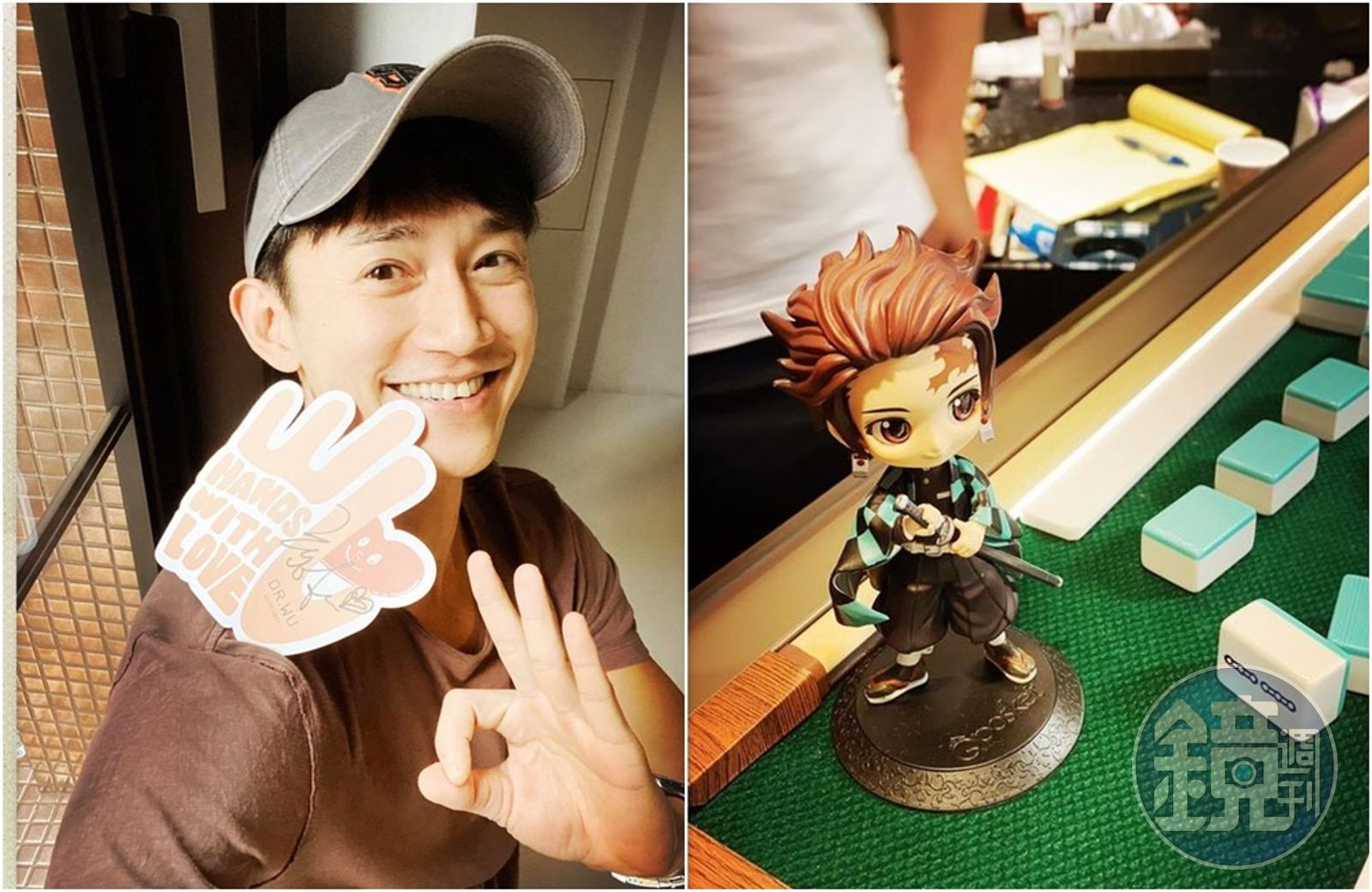 吳慷仁也瘋《鬼滅之刃》,與朋友打麻將召喚炭治郎公仔來護駕。(翻攝自吳慷仁粉絲專頁)發布時間:2020.11.09 11:31 臺北時間