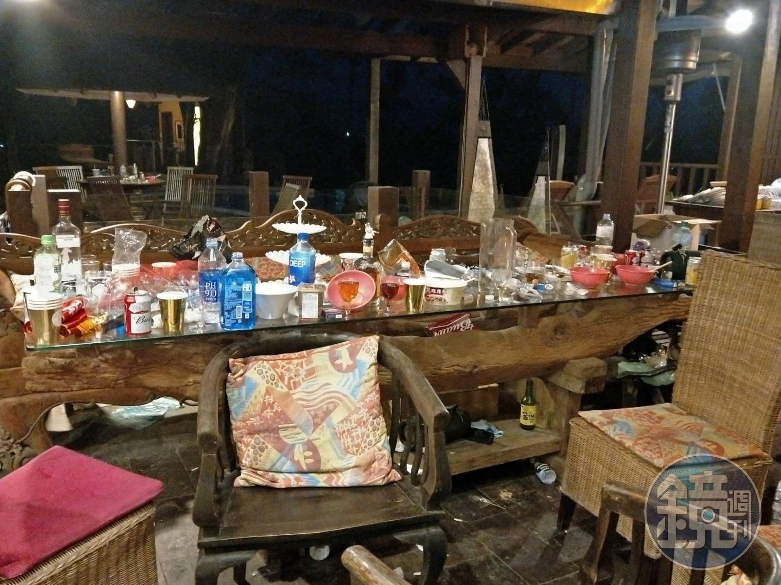 隔天一大早,民宿管家前往準備早餐,看到公共區域時更是傻眼,桌椅未歸位、桌上地上到處是菸酒殘骸和用過的衛生紙,房價不包含自行烹煮衍生的清潔費用,本應先收2,000元押金,但出於信任,業者並未要求押金,而房客亦未收拾鍋碗。管家見狀忍不住說:「啊你們都沒收喔!」便被投訴態度不佳,房客清醒後在業者的要求下自行清理乾淨,仍抓著態度問題不放,被投訴管家委屈到當天哭著說要離職。
