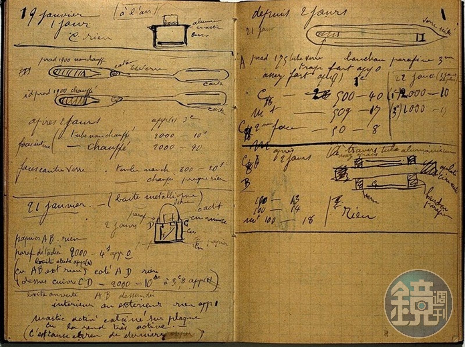 這本泛黃的筆記是居禮夫人在1899年至1902年期間所使用,從照片中能看出時隔百年後,她的字跡依舊完整保留。但即使距今已超過120年,居禮夫人這本筆記的輻射仍未消散,且官方認為上頭的放射性將回持續1,500年之久。