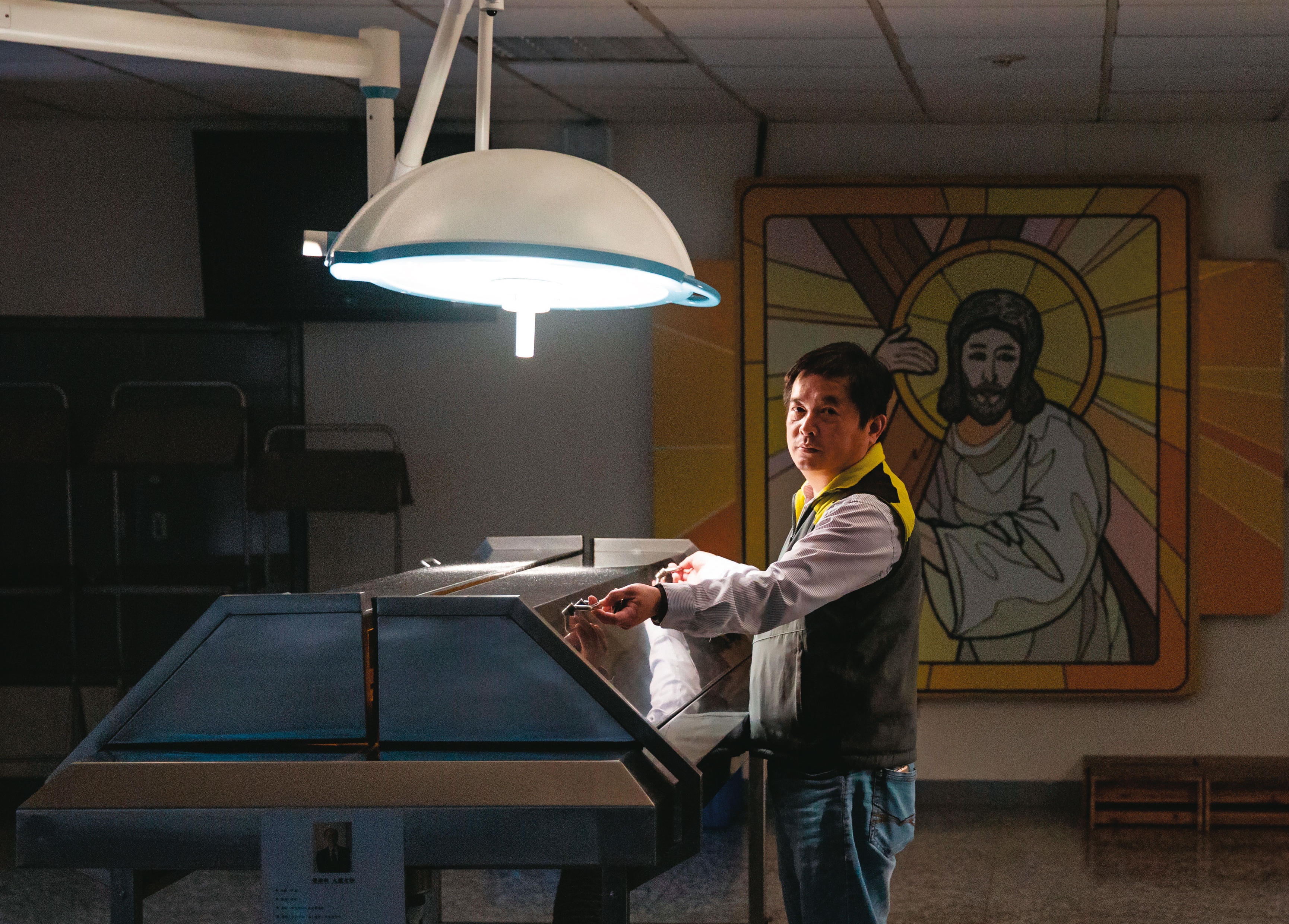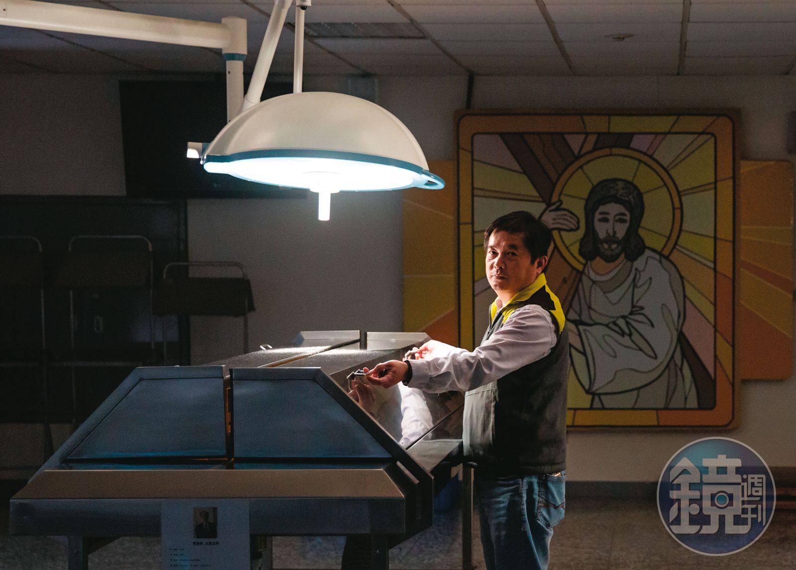 現在我做大體防腐已經14年,不只防腐,最後要協助火化、安葬。說到這個,火化要寫身分別,器官捐贈者會註明是捐贈者,火化免費,捐大體卻只能歸類一般民眾,我就跟殯葬處爭取,不只為了免費,主要是敬重。這2年學校在陽明山的天主教墓園滿了,蓋新墓園需要募款,我也想幫忙,讓大體老師能安葬。