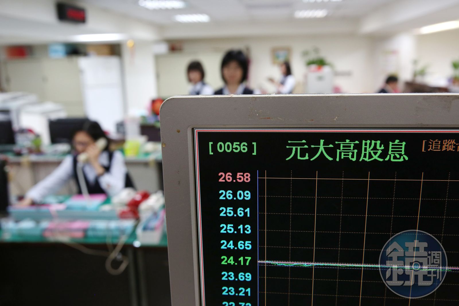 受疫情影響,上市櫃公司發放股利下滑,導致0056今年僅配出1.6元,但在所有台股ETF中,0056的殖利率仍稱冠。原以為配息率下滑,搶息潮恐不如以往,但伴隨盤中零股交易上路,ETF交易成長帶動受益人持續增加。