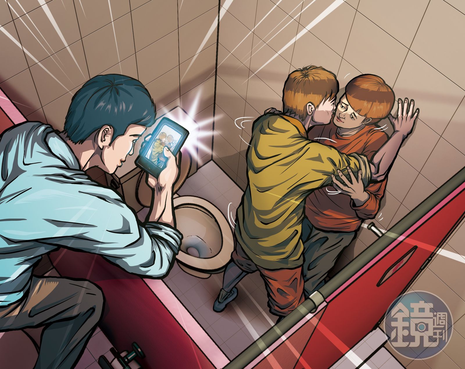 這時,甫到校實習不到半年的陳姓男老師聞訊前往了解狀況,一走進女廁,發現第一間廁所上鎖且傳出異常聲響,竟未大聲斥責或敲門制止,旋即走到隔壁間廁所,拿出手機越過隔板,由上往下側錄2名學生的性愛過程。