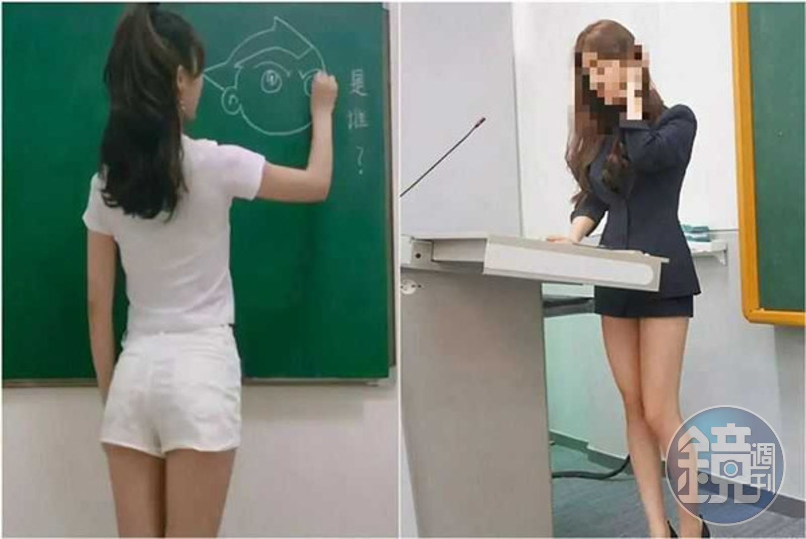 中國有一名24歲、外型亮麗的楊姓女教師,上課時穿的衣服也引起討論,家長群組瘋傳的照片中,只見楊師穿著貼身套裝,超短窄裙秀出美腿,另一套則是她穿白色上衣配上短熱褲,姣好身材包不住。