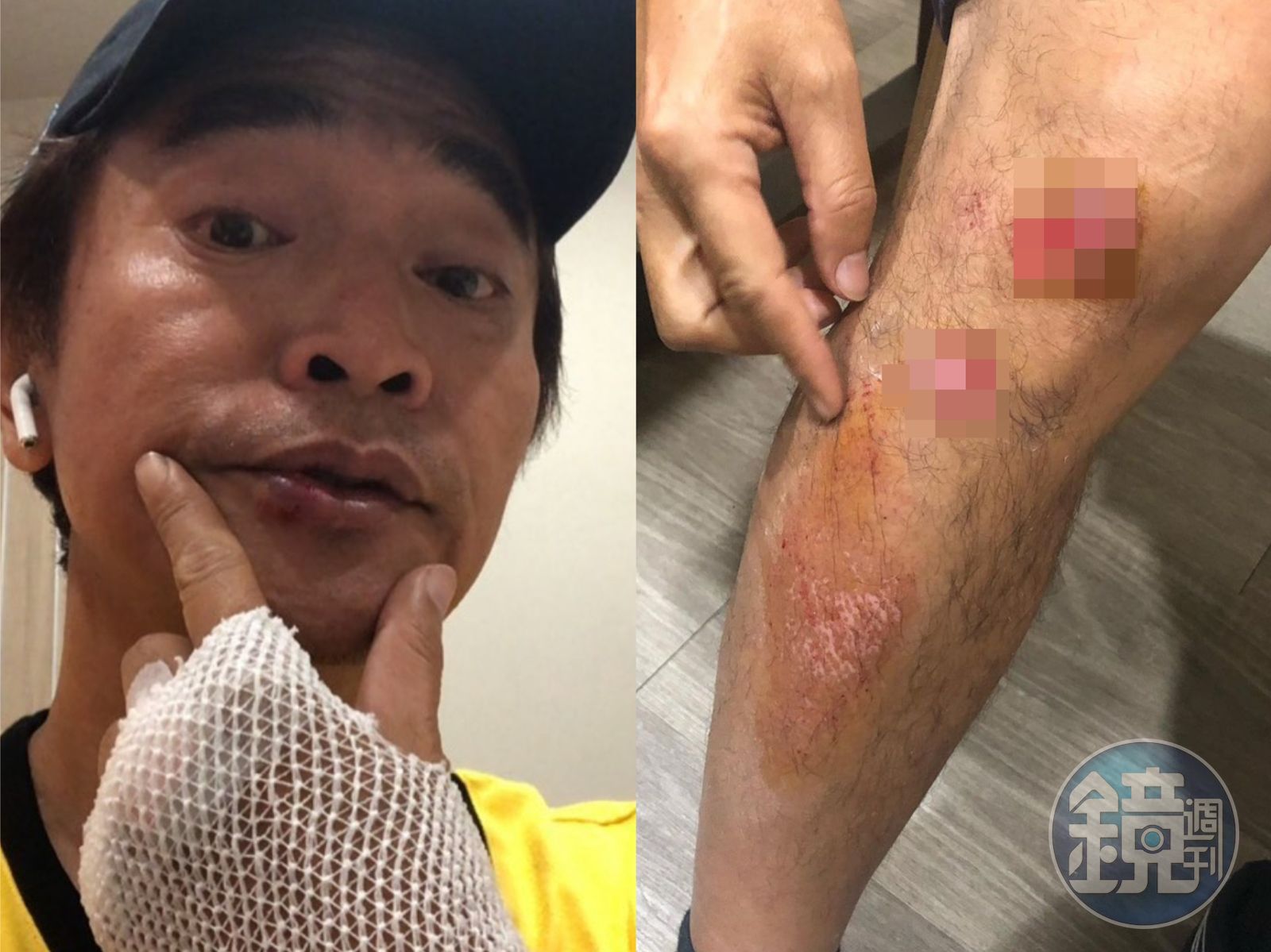 吳宗憲透露自己將前往醫院對腦部做電腦斷層掃描,以防萬一。(翻攝自吳宗憲IG)白天才開心曬全組慢活喝咖啡照片,晚上卻變成滿身傷痕的吳宗憲,提及自己的摔車過程,他透露是在錄製《綜藝玩很大》的闖關過程中摔傷。吳宗憲也貼出一段空拍影片,只見他速度相當快,才剛進橋頭就摔車,並滑行約10公尺後才停止,造成全身多處擦挫傷,安全帽也整個碎裂,節目也因此中斷錄影。