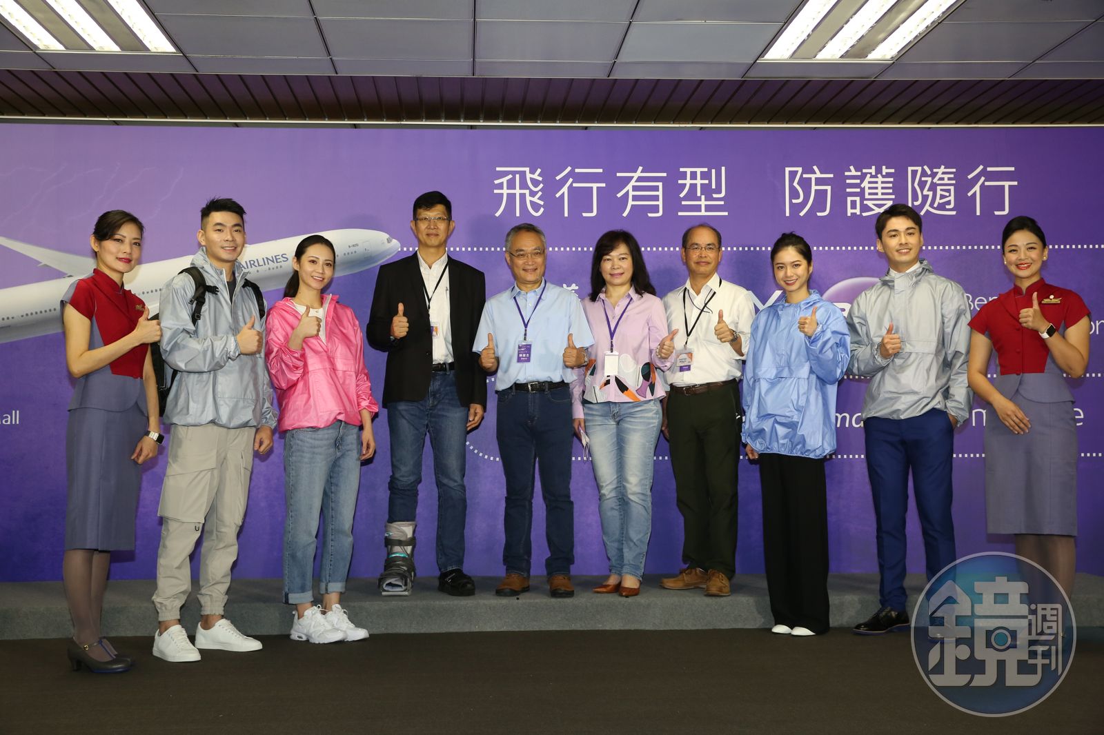 「明基材以獨有超薄膜技術,讓衣物能完全阻擋雨水,不僅濕熱汗氣通過,還能阻隔環境中的有害因子,達真正持久防水防風、透氣舒適,利用微多孔膜技術,讓織材孔徑比市售衣服還要小,可以阻擋病毒穿透,」陳建志解釋這件防護帽T特殊技術,也是說服華航聯名的關鍵原因。