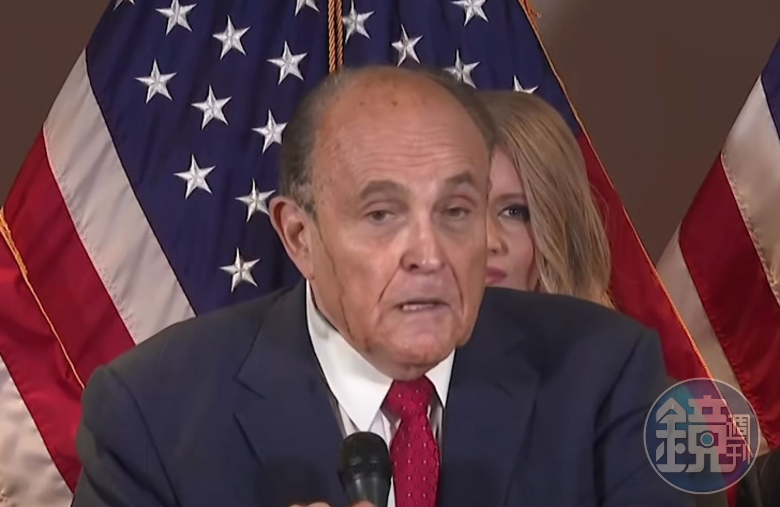 根據外媒報導,川普私人律師朱利安尼近日為了大選訴訟奔波,而昨日在華府開記者會的他,不曉得是否因為天氣太熱,或是情緒太過激動,臉上的汗水沒有停過。