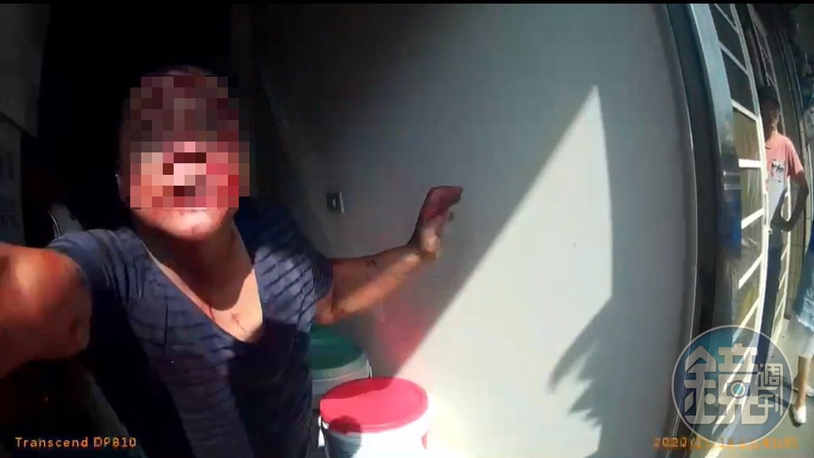 更驚悚的是,男子又繼續快速爬向救護人員,嚇得他趕忙衝到一樓,男子甚至以「頭下腳上」的方式,在樓梯間瞪著這名警消,還露出恐怖的笑容;下一秒居然快速衝向警消人員,將他推倒在地,還壓在他身上。同僚見狀連忙上來協助掙脫,這名全身是血、行徑恐怖的男子,還在大街上繼續追逐2名救護人員,驚悚過程全被警消身上的密錄器錄下。