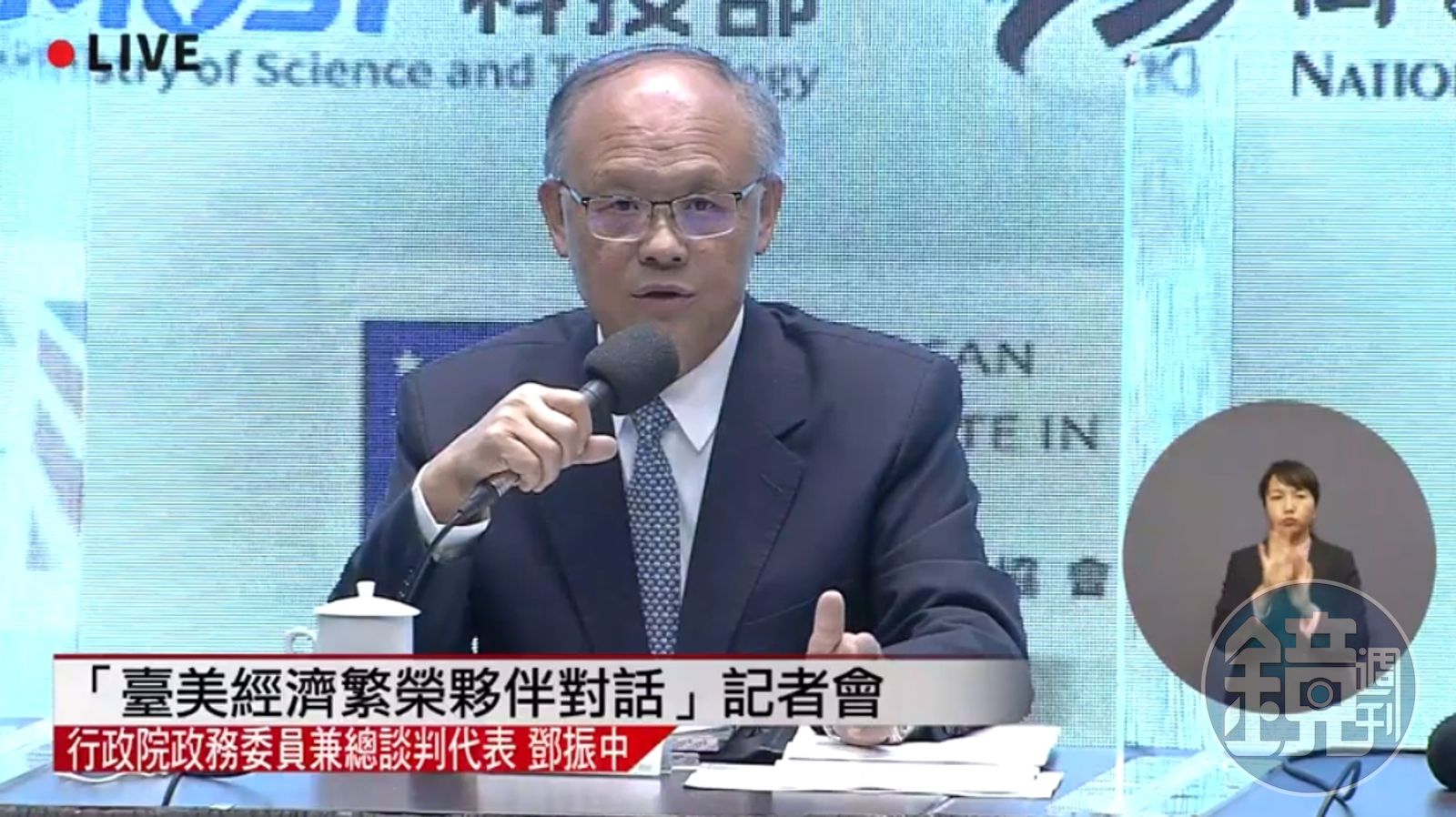 行政院今日上午召開「台美經濟繁榮夥伴對話」記者會,由行政院政務委員鄧振中、經濟部長王美花、外交部長吳釗燮、科技部長吳政忠、美國在台協會台北辦事處(AIT/T)處長酈英傑(Brent Christensen)。