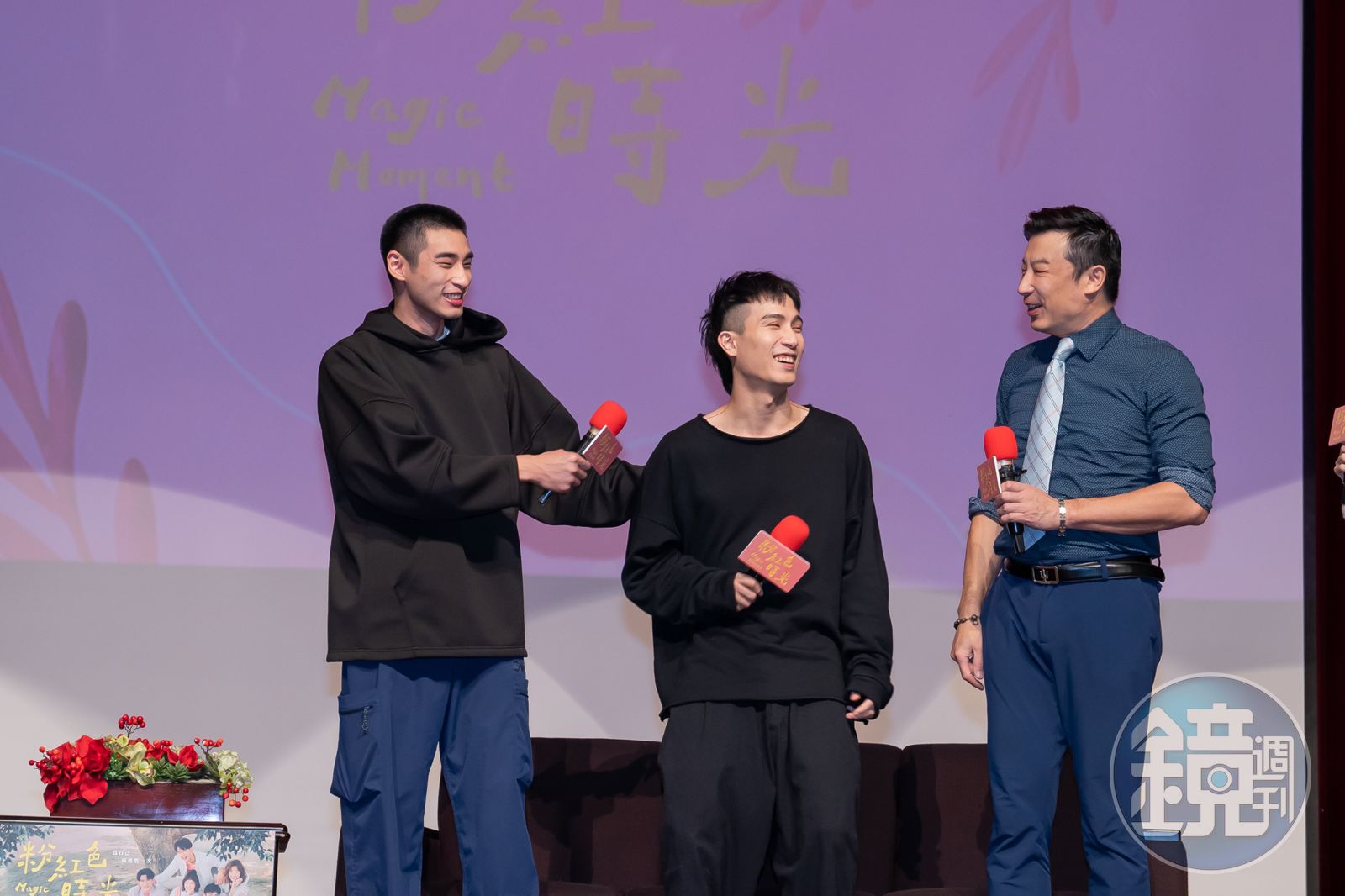 歌手出身的陳彥允也獻唱《粉紅色時光》插曲〈愛你一萬年〉,讓在場學生直呼:「好好聽,耳朵已懷孕,再唱一首!」而在第二集就獻出「濕身秀」的章廣辰重現劇情,作勢要脫掉上衣犒賞粉絲,引發現場一片驚呼!沒想到褪去帽T後,裡面還有一件上衣,笑翻全場。