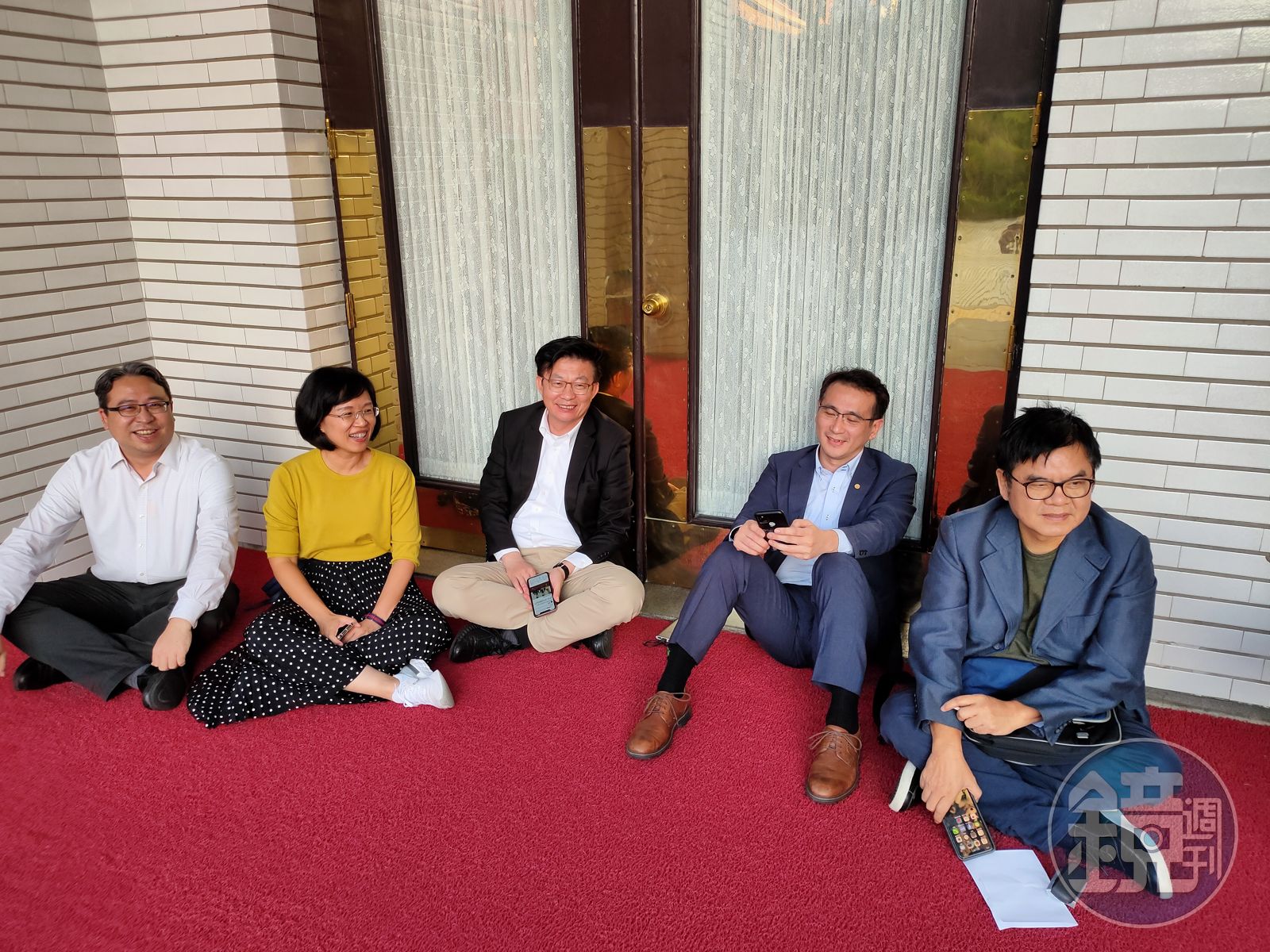 民進黨立委黃世杰(左起)、蘇巧慧、郭國文、鄭運鵬、莊瑞雄已在立院議場前排班。發布時間:2020.11.25 17:18 臺北時間