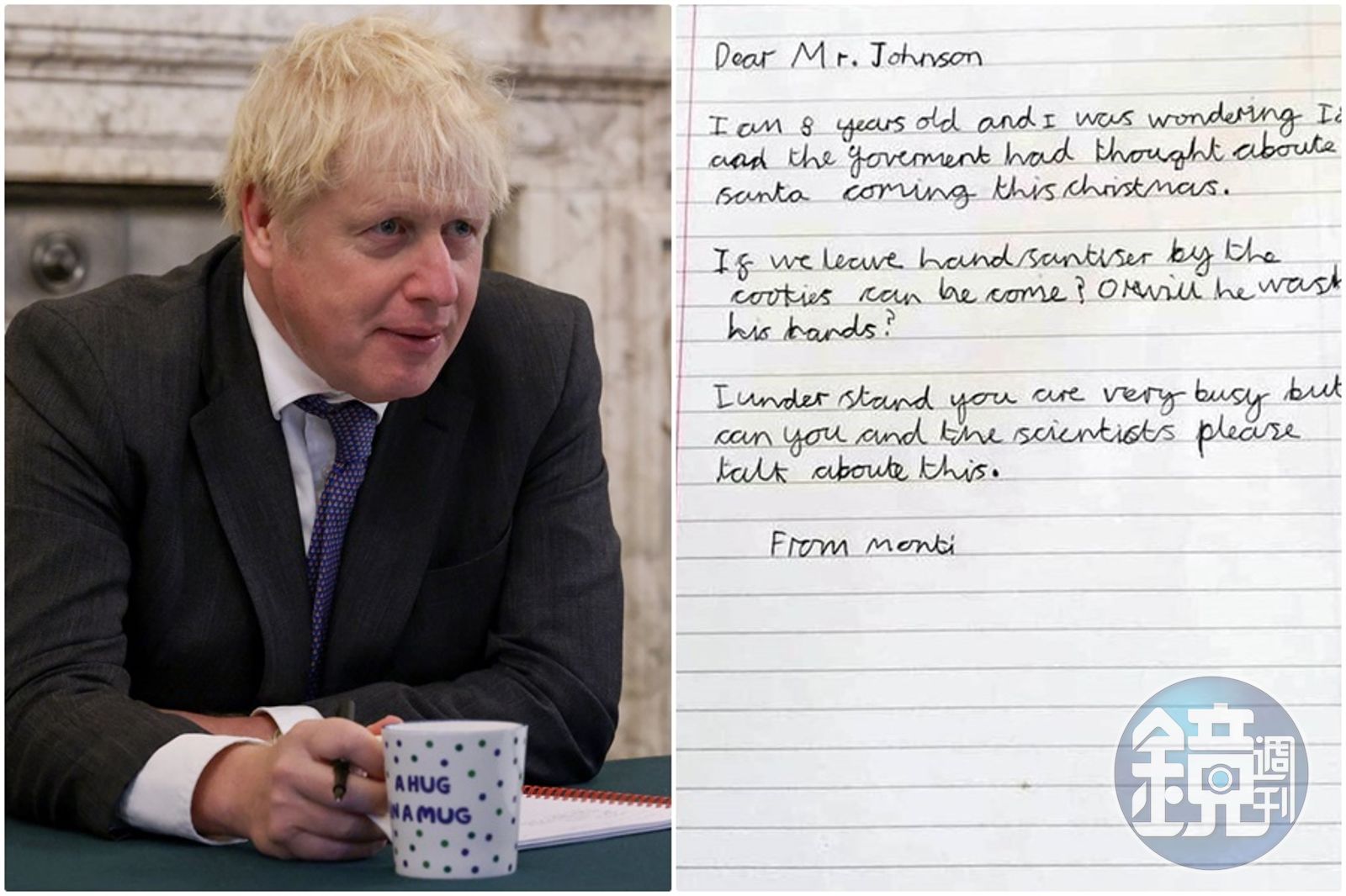 武漢肺炎(COVID-19,亦稱新冠肺炎)襲擊全球,英國日前因應疫情實施全國封鎖政策,將於12月2日期滿後解封。隨著耶誕節腳步接近,有小朋友寫信給英國首相強森(Boris Johnson),詢問今年耶誕老人會不會因為疫情關係而無法送禮物,強森則回了一封溫暖的信給他,並在個人官方推特上公開。