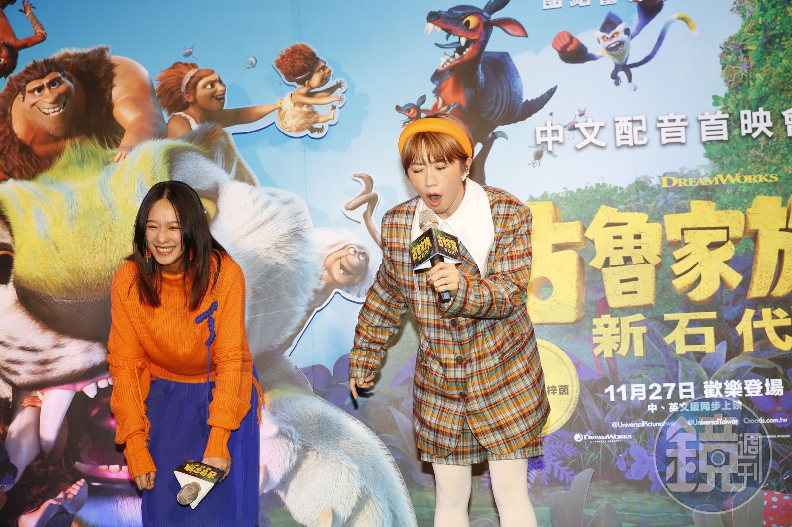 現實中2人是好友,但在動畫裡頭卻得配母女,這讓孟耿如提早當媽,讓她覺得很不想承認,但Lulu黃路梓茵直接喊:「孟媽媽!」大家都忍不住大笑。至於跟黃子佼結婚後,有沒有打算何時生小孩當媽媽,孟耿如說生子計畫現在沒辦法報告,「最新進度就是生了Lulu這個小孩。」至於有沒有想過自己會變成怎樣的媽媽,她說:「愛最重要,做什麼事不重要,一起做最重要,我應該是會很疼女兒的媽媽。」