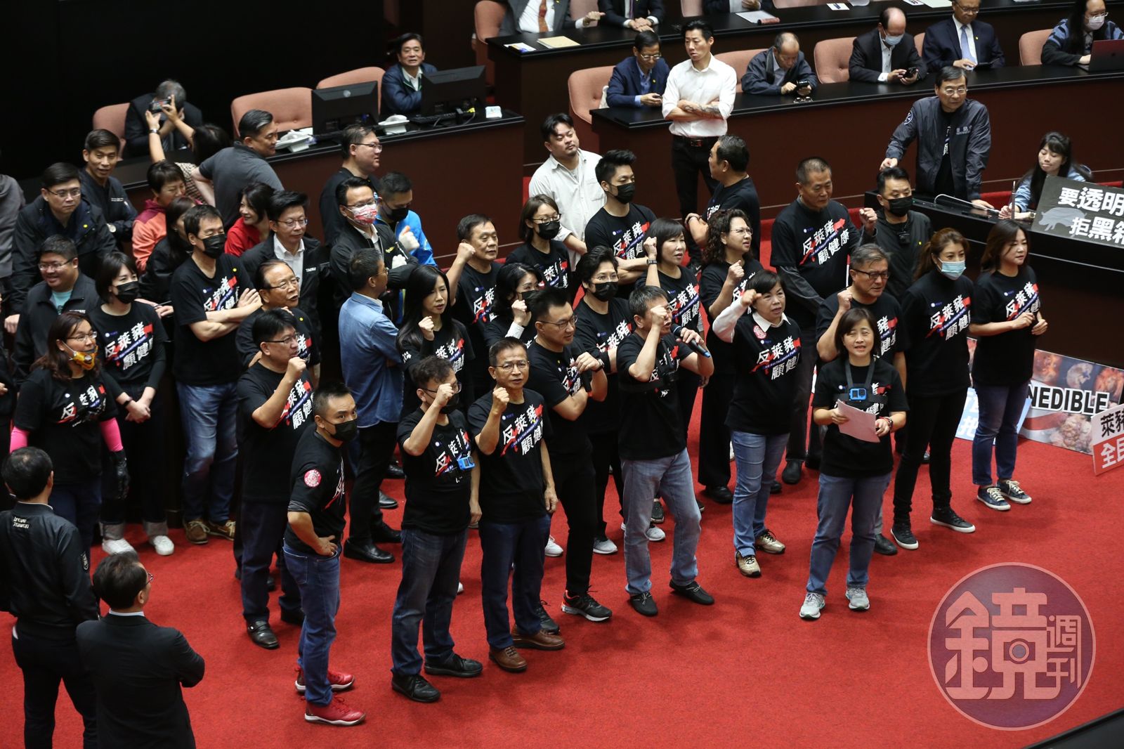 國民黨團再次於議場上舉標示,要求蘇貞昌道歉。