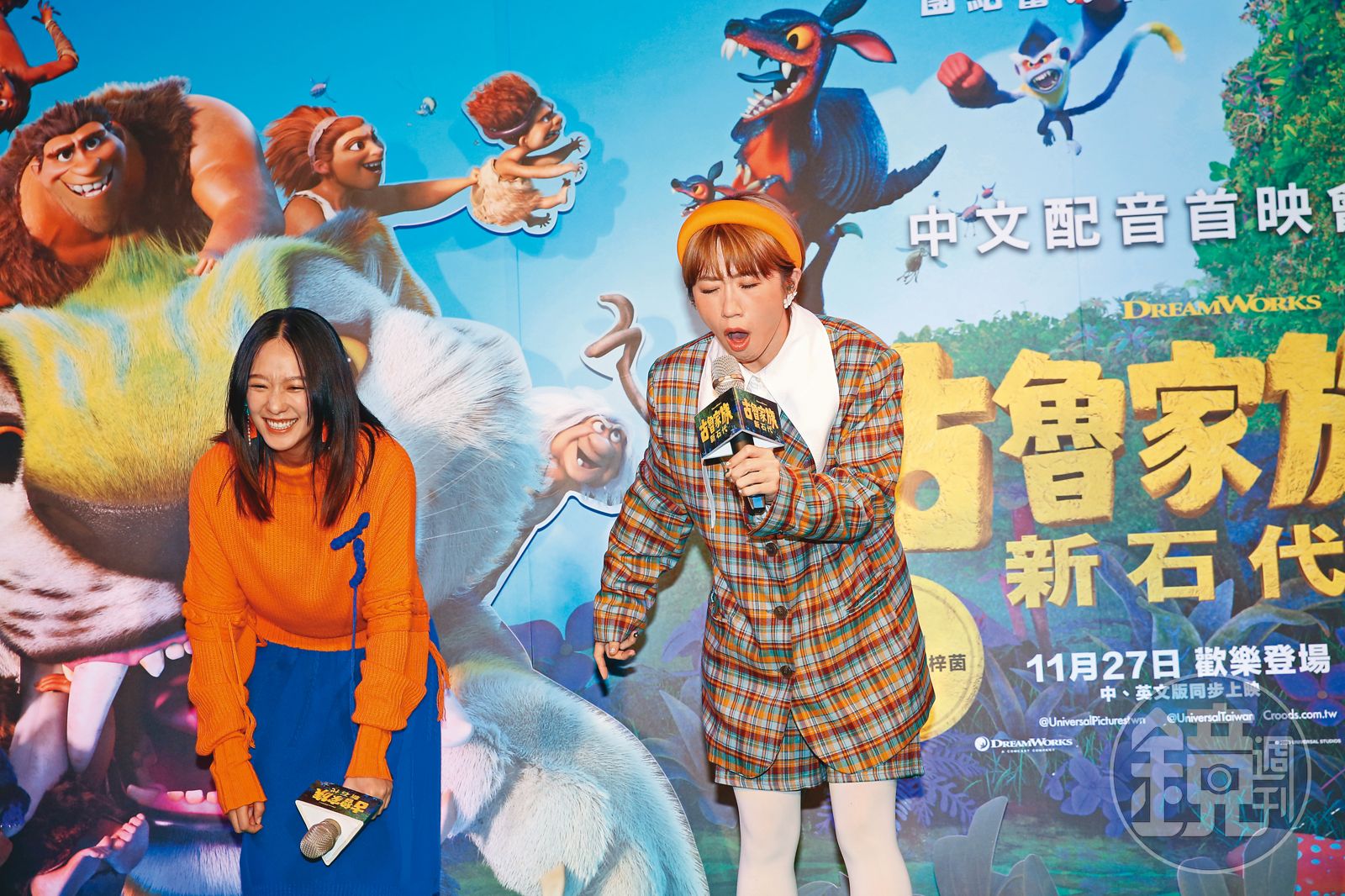 Lulu(右)張口呼吸,生動表演嗨茫實況,害孟耿如(左)笑到並軌。發布時間:2020.12.05 05:59 臺北時間