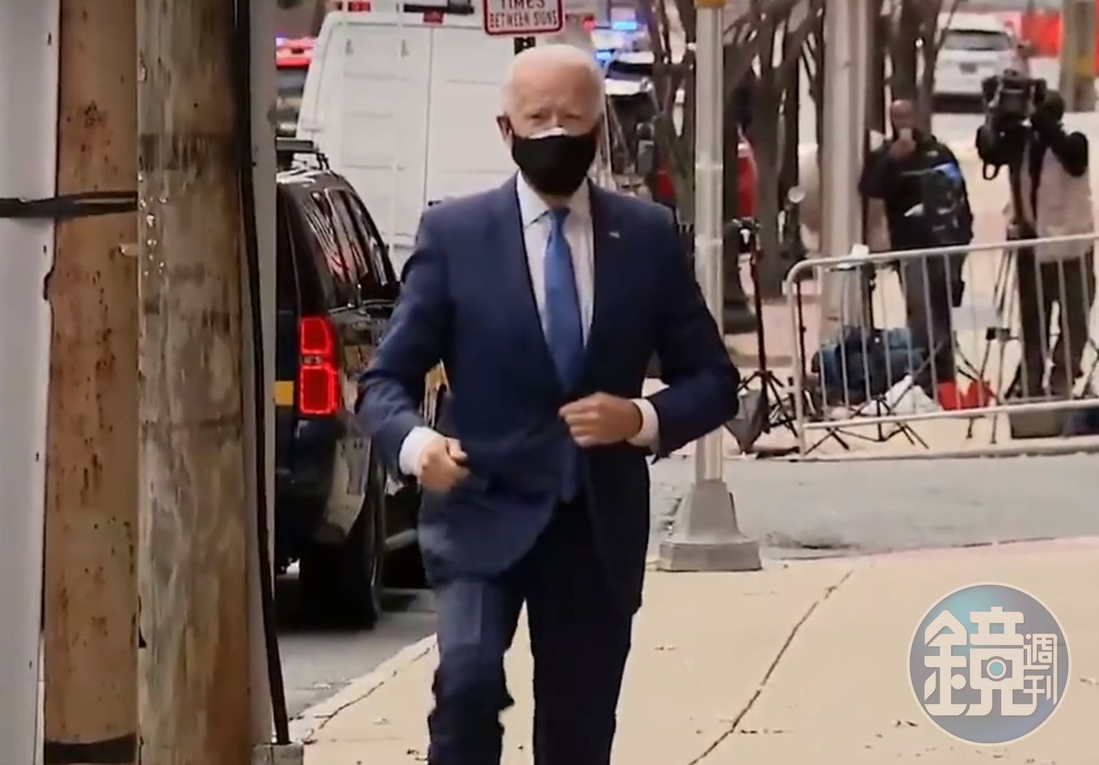 高齡78歲的拜登1日抵達威爾明頓市,宣布新的內閣人選,這是他傷後首度公開露面,精神看上去不錯,下車時還向在場媒體打招呼,指了指自己的右腳,可見他已穿上復健鞋。有記者問他傷勢如何,他活動了一下右腳表示自己很好,並豎起大拇指謝謝大家關心。