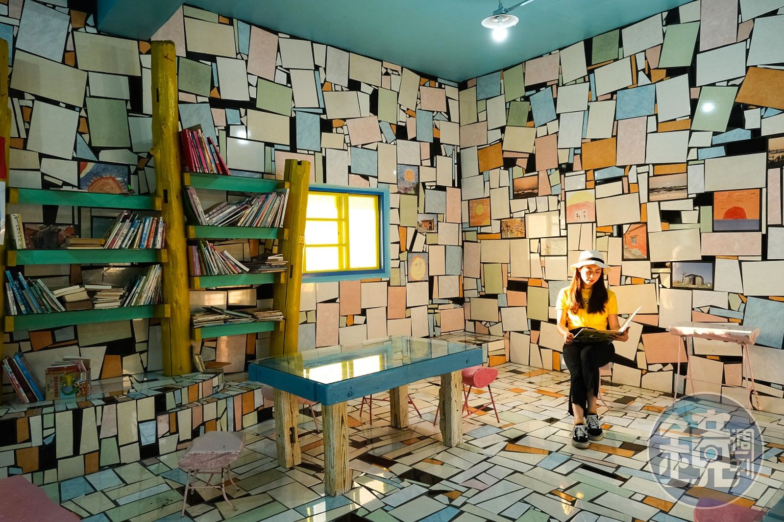 隔壁就是將荒廢建築變成海底小龍宮主題的「成龍集會所」,裡頭各色磁磚馬賽克貼滿地面和四面牆,創造出的奇幻空間,自然而然成為網美們的打卡熱點,裡頭擺有書籍,是當地小朋友的課後圖書館,仔細看馬賽克磁磚,裡頭有不少是昔日成龍社區生活老照片,相當有意思。