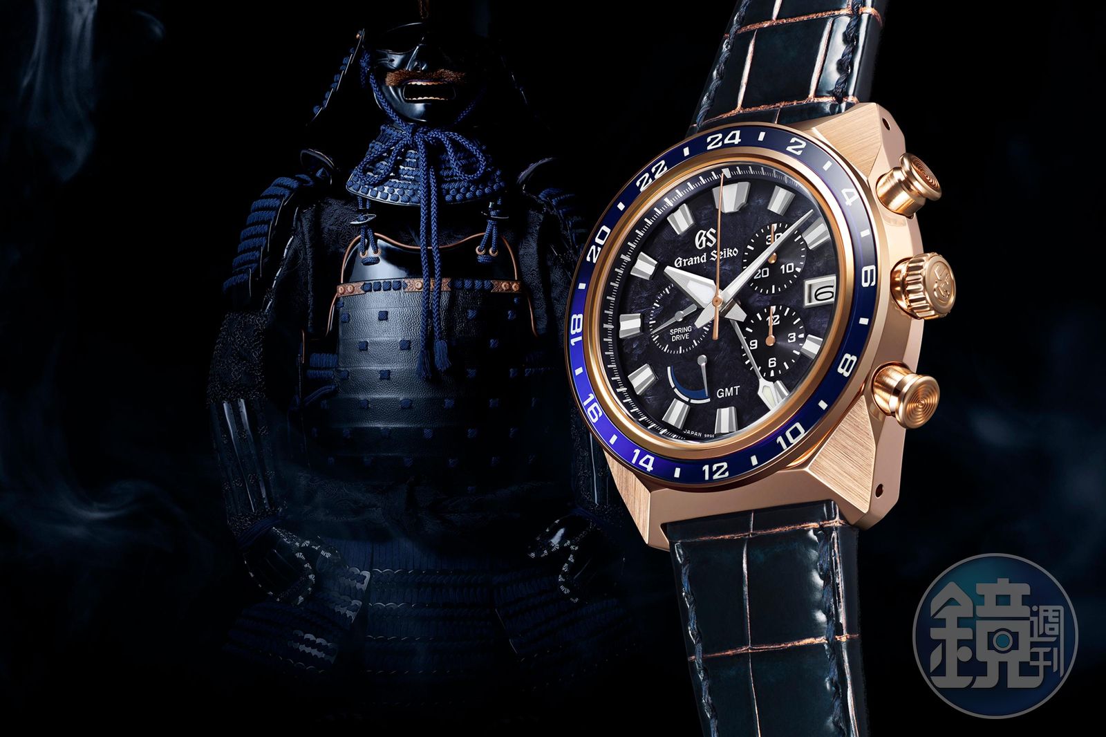 勝色(かちいろ),指的是古代日本武士愛用在甲冑上的藍染顏色,也被稱之為「武士藍」。GS將勝色表現在皮革錶帶上,特殊的染色之外,還在皮革的紋路之中填入玫瑰金色的線條,表現出猶如甲冑的邊條配色。至於面盤跟錶圈以接近勝色的深邃藍來呈現,面盤上的飾紋代表著百獸之王的精緻鬃獅毛紋理,這正是「Tokyo Lion」運動錶的招牌特色之一。