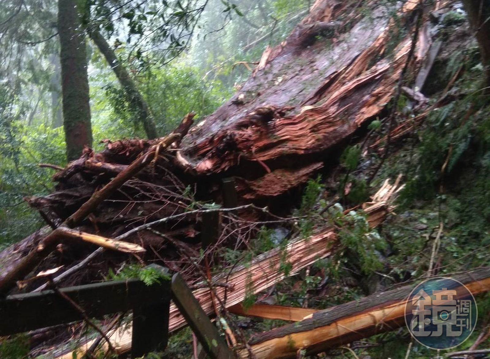 不敵山區連日豪雨 桃園拉拉山千年紅檜倒下
