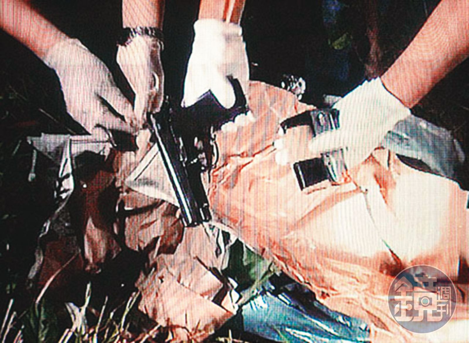 警方在四獸山忠義宮旁的芒果樹下,起出被奪的警槍與子彈。(翻攝畫面)發布時間:2020.12.07 05:58 臺北時間