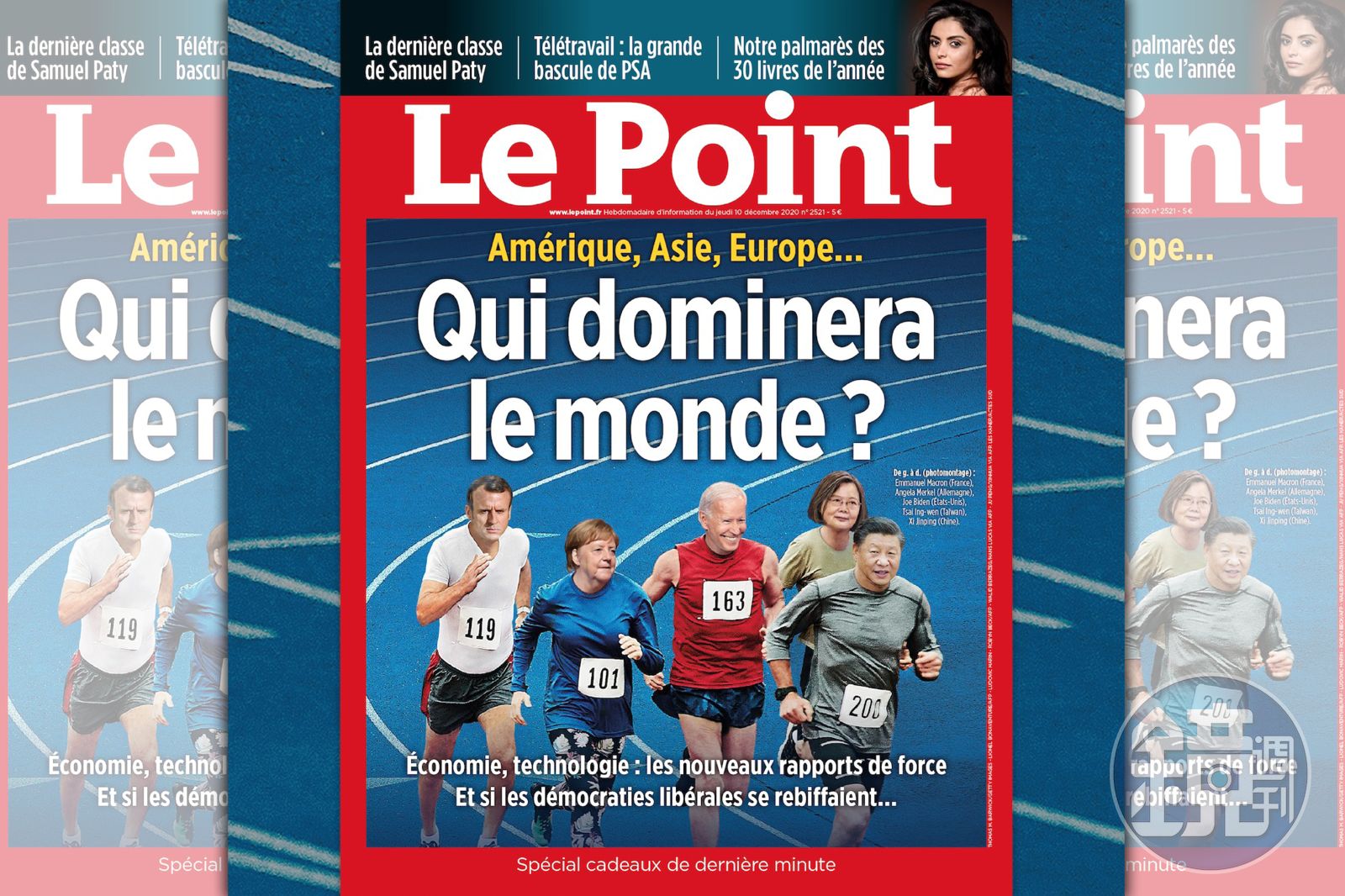 總統蔡英文與美國總統當選人拜登、法國總統馬克宏、德國總理梅克爾及中國領導人習近平同框,成為法國《重點週刊》封面人物,表現出世界五大領袖爭鋒賽跑,內容主要探討「未來誰將主宰世界?」有趣的是,蔡英文在封面的位置,特別被放在習近平後方。