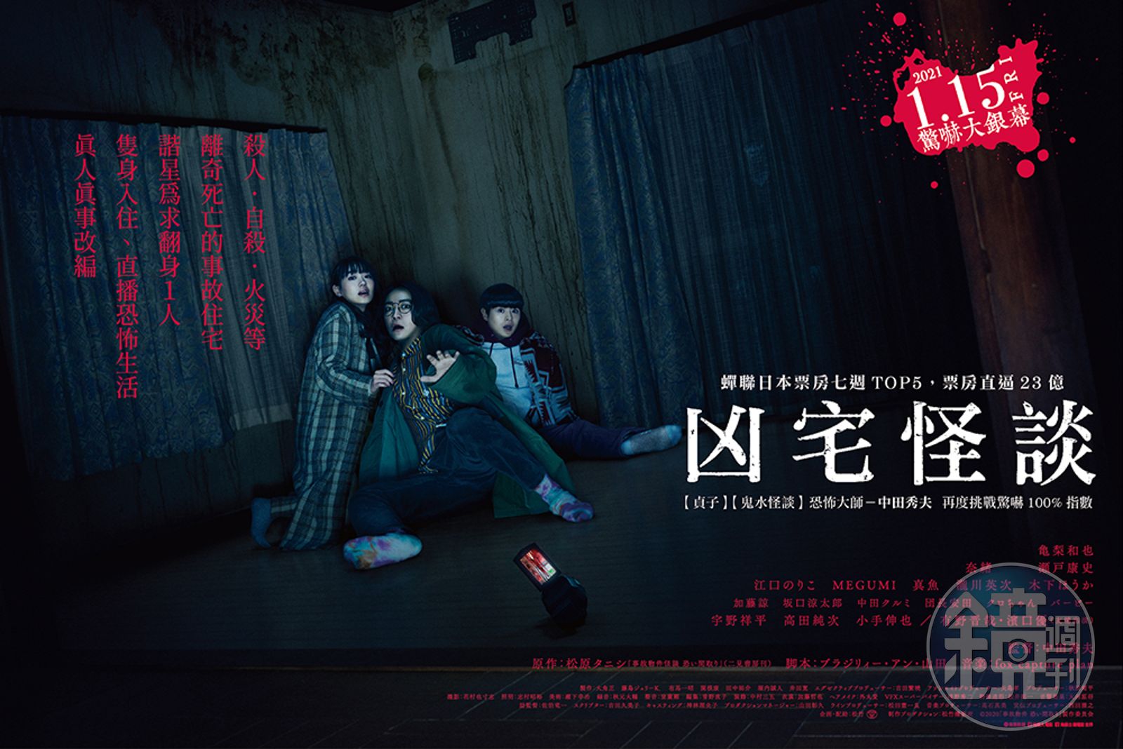 電影由《七夜怪談》系列導演中田秀夫執導,龜梨和也主演,還找來台灣觀眾熟悉的「好孩子」濱口優與有野晉哉出演大明星,有野晉哉搞笑地說:「我拍胸脯地向導演說:『我要用這部片拿到藍絲帶(演技)獎』,結果龜梨和也突然發脾氣,說不要亂開玩笑!真是嚇死我了。」讓龜梨和也連忙澄清自己口氣並沒有那麼差。電影《凶宅怪談》即將在明年1月15日在台上映。