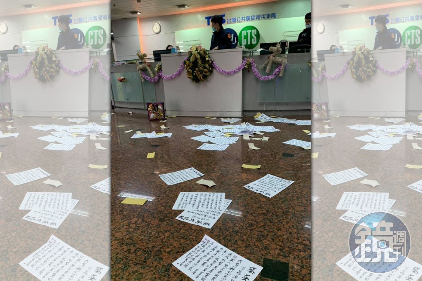 據綜合報導指稱,黑衣男子今進入華視大樓後,表明「共產黨要危害國家」想要進行申訴,但警衛回應今天並非上班日,要他擇日再來,並將男子請回。怎料,男子隨後竟回到大樓內狂撒冥紙和傳單。 傳單上顯示,男子有一群忘恩負義的家人與兄弟姐妹在替共產黨做事,並且共產黨員還要對總統蔡英文不利,而撒完冥紙和傳單後男子便離開。對此,華視隨即向台北市大安分局報警,警方在調閱了監視器畫面後,掌握到男子應為40歲左右,目前已經鎖定特定對象偵查中,並將依恐嚇罪嫌偵辦。