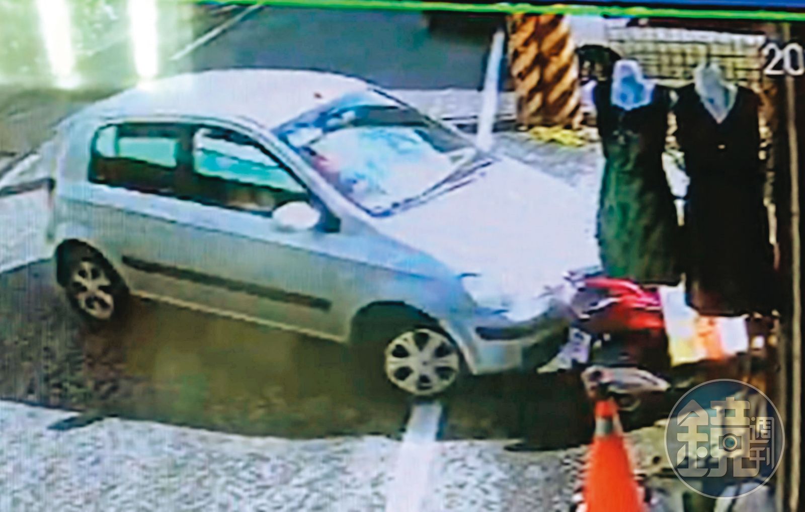 江女開車閒晃近8個小時,隔天上午9點左右,在準備返回租屋處途中,似乎因殺人亂了心神,竟然轉入一條死巷,還不慎撞到一旁店家門口的機車,車主找她理論,她嚇得落跑,對方因此打電話報警。巧合的是,警方到場時,江女剛好返回現場,想找車主談賠償,被警方逮個正著。陳賜明透露,車禍發生過程頗為離奇,從監視器畫面看,就像是有一股力量推著汽車,偏離原來的方向。