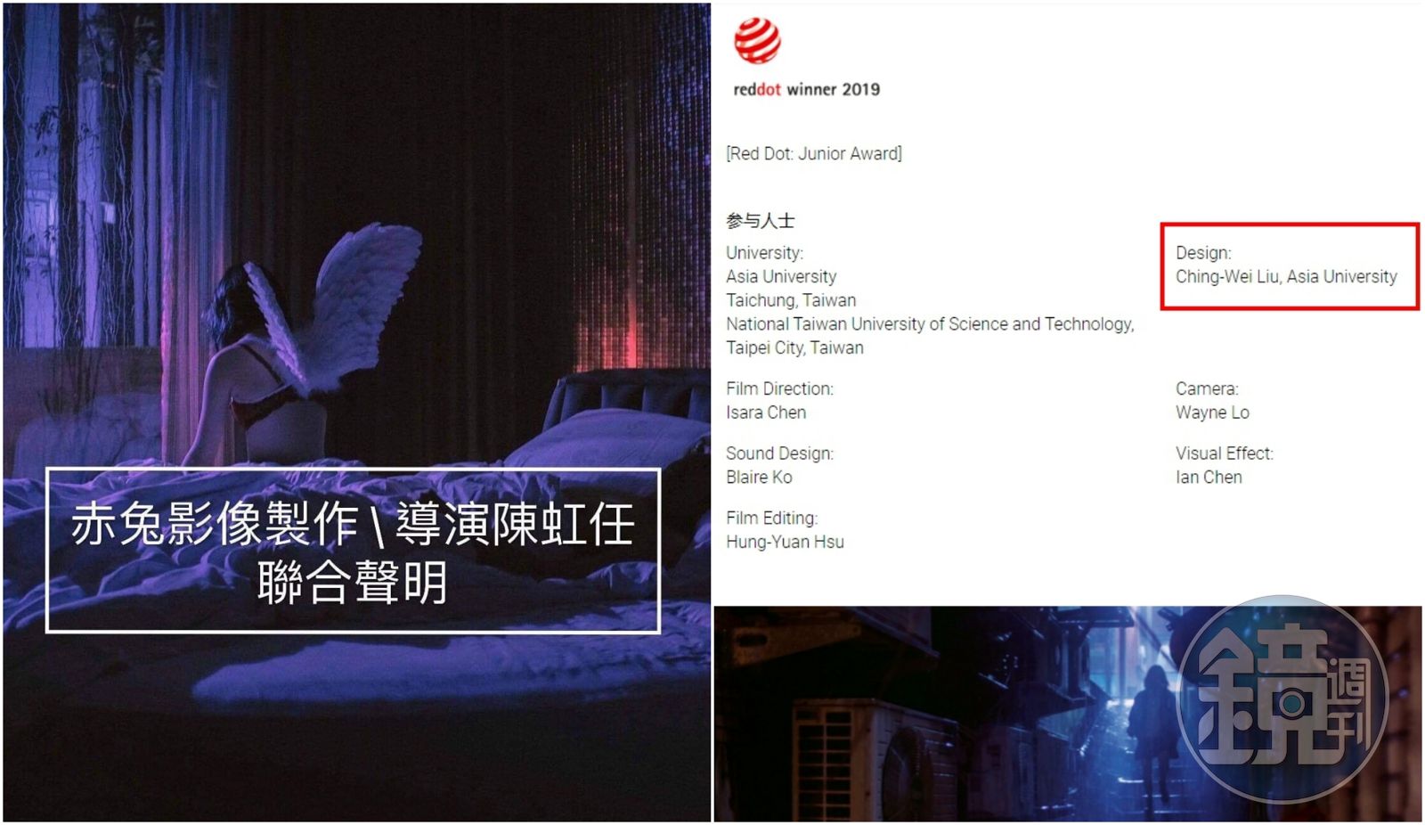 陳虹任與赤兔影像製作有限公司昨(13日)聯合發表聲明,指出平面設計師劉經緯並非短片《唏哩唏哩,嘩啦嘩啦》的劇組成員,卻在未經授權之情況下報名2019年紅點設計獎,並獲得紅點獎的「Junior Award」。劉經緯還把自己掛名為設計(design),還掛上與該片無關的單位亞洲大學與臺灣科技大學的名字,此外報名欄位中,除了導演和攝影師的名字是正確的之外,其他報名者如聲音設計、視覺特效與剪接師,都不是該片的劇組人員。