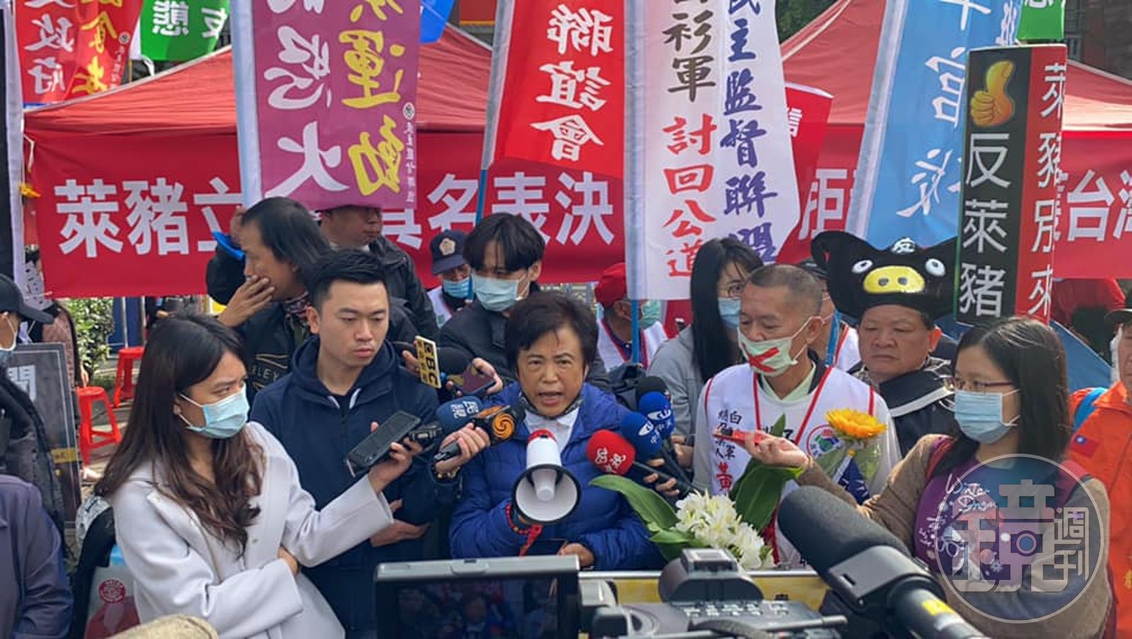 為抗議萊豬進口,國民黨前立委沈智慧在立法院門口發起「野薑花運動」。(翻攝自沈智慧臉書)發布時間:2020.12.16 14:25 臺北時間