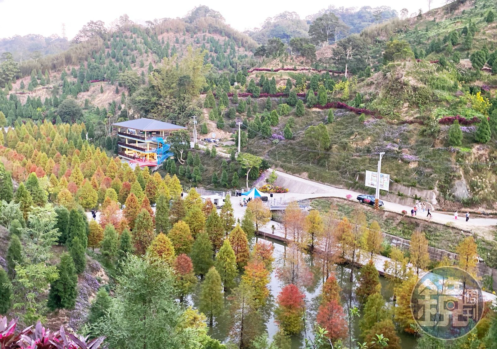 這片腹地廣達16甲的山頭為人氣民宿蘇維拉莊園主人所擁有,大地主樂於分享美景,將私人土地對外開放,每到落羽松轉紅的季節,遊客絡繹不絕前來,園主女兒帶著我們探訪祕境,找尋最棒拍照點。