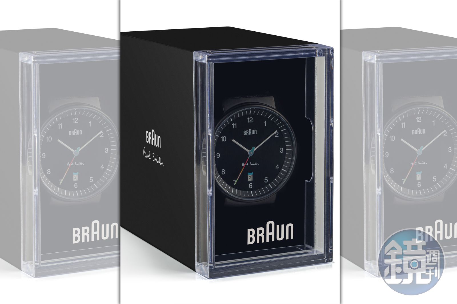 結合英倫時尚風格與設計精密的德國工藝,Paul Smith x Barun限量鐘推出時鐘與腕錶,整個系列鐘錶傳遞品牌獨樹一格的設計DNA,將極簡的美學風格深植人心。外觀採用深邃的黑色,標誌性的黃色指針搖身一變穿上Paul Smith著名的彩色條紋,不僅為歷久彌新的設計增添俏皮風範,同時兼具外觀、功能性與實用性。全系列外包裝盒均印有全新的Paul Smith x Braun插畫設計。