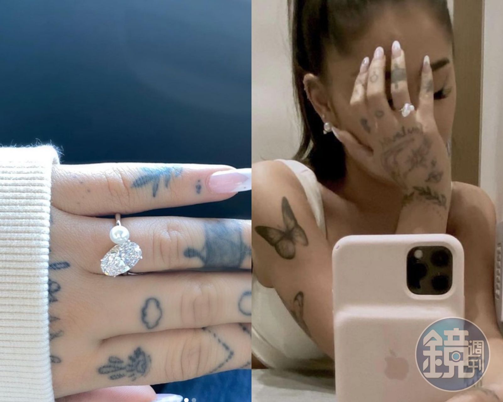 輝煌的事業之外,亞莉安娜跟男友達頓的感情也低調進展神速,現在秀出鑲有珍珠的鑽石戒指,就是宣告2人訂婚,她在Instagram上只是簡單寫著,「永遠,然後永遠。」消息一傳出,名流紛紛留言祝賀,金卡戴珊就說:「真的替你們2位開心!」小賈斯汀的老婆海莉則寫:「替你們感到非常高興!」連亞莉安娜的母親瓊安(Joan)在推特上發文:「好高興達頓可以加入我們,亞莉安娜跟達頓我愛你們,這真的是最幸福的結局!」