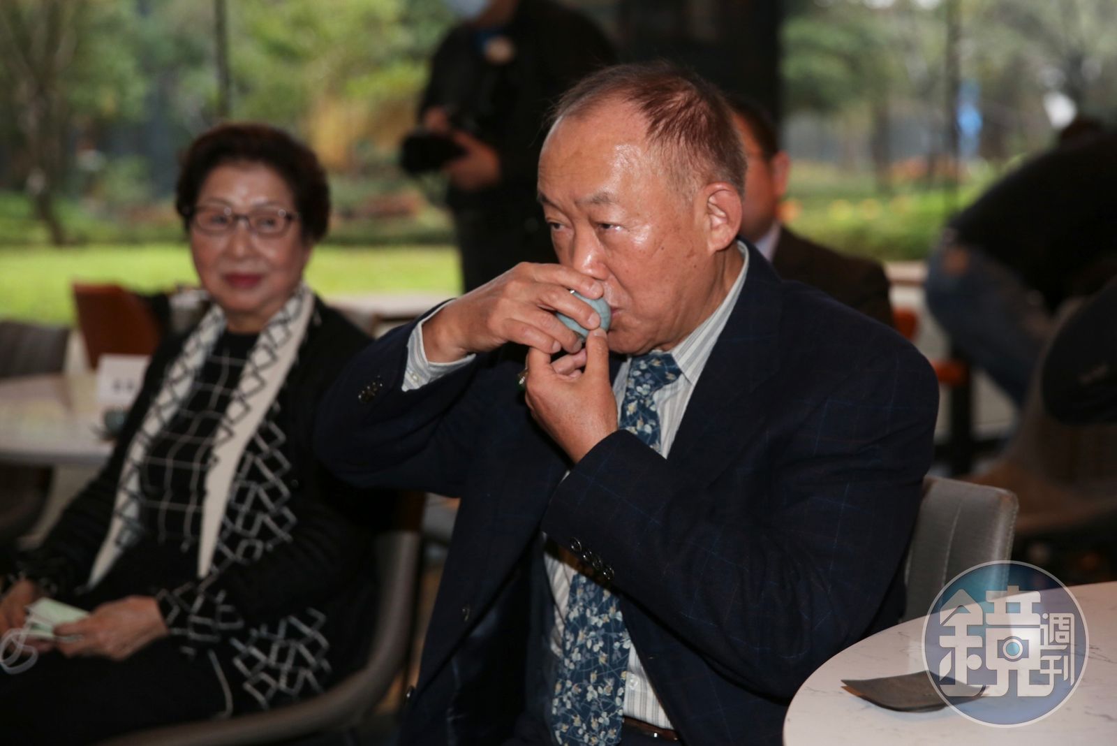 蔡其建熱愛茶,收藏普洱茶、烏龍茶、高山茶品類多元,今天首度將茶事業公開,和台菜老品牌欣葉合作,在台北大直欣葉鐘菜限時限量推出,結合美食與茶藝的迎新饗宴,蔡其建心情大好,不僅大讚長子蔡明倫返家接茶事業,還要么兒「多和哥哥學著點。」