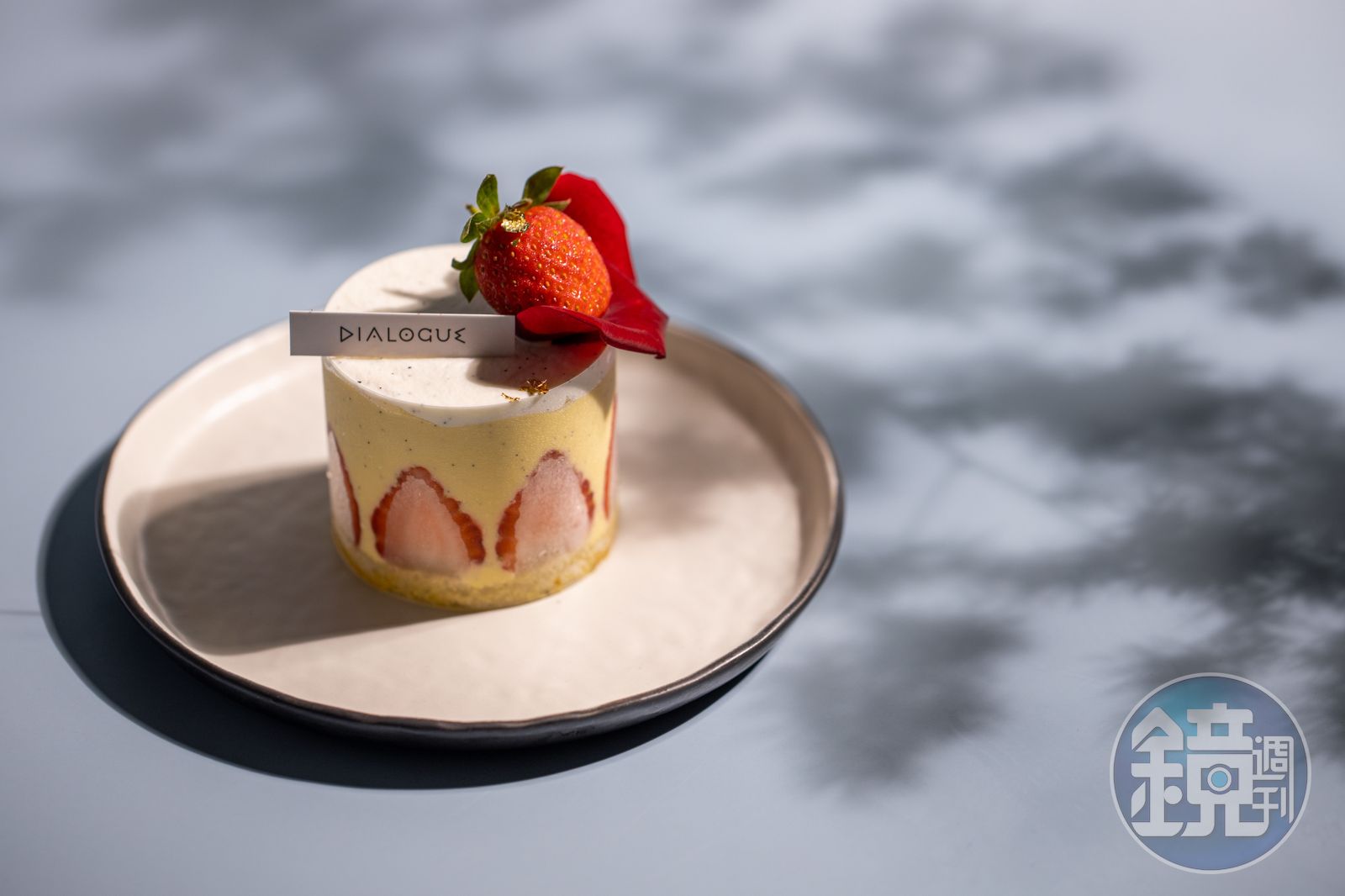 走進Dialogue,你得先換上拖鞋,把煙塵置於身後,也是一種入門的儀式感,客人在前頭喝著茶,老闆應政儒(鯊魚)就在後方中島靜靜做著甜點,看起來沉默斯文的他,其實是位紀錄片導演,在拍完第2部片的空檔,意外因打工接觸了法式甜點,被它複雜、細緻、高挑戰性所吸引。