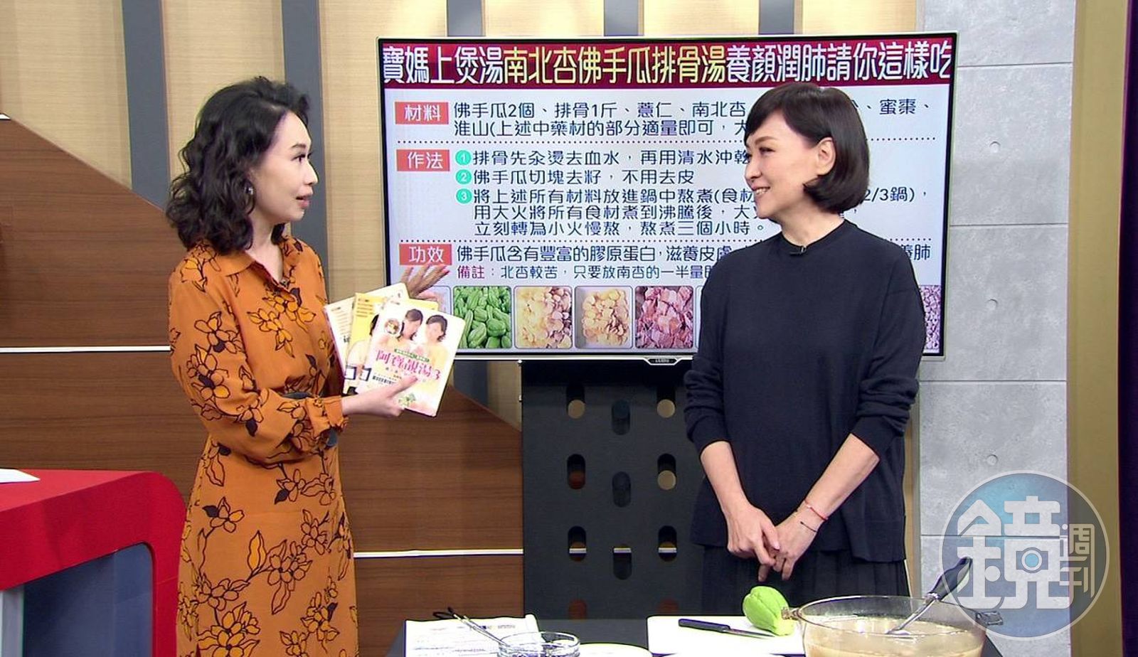 寶媽20年前和曾寶儀一起出的煲湯系列書籍,至今仍是圖書館暢銷書。左為主持人高文音。(年代提供)發布時間:2020.12.24 15:17 臺北時間