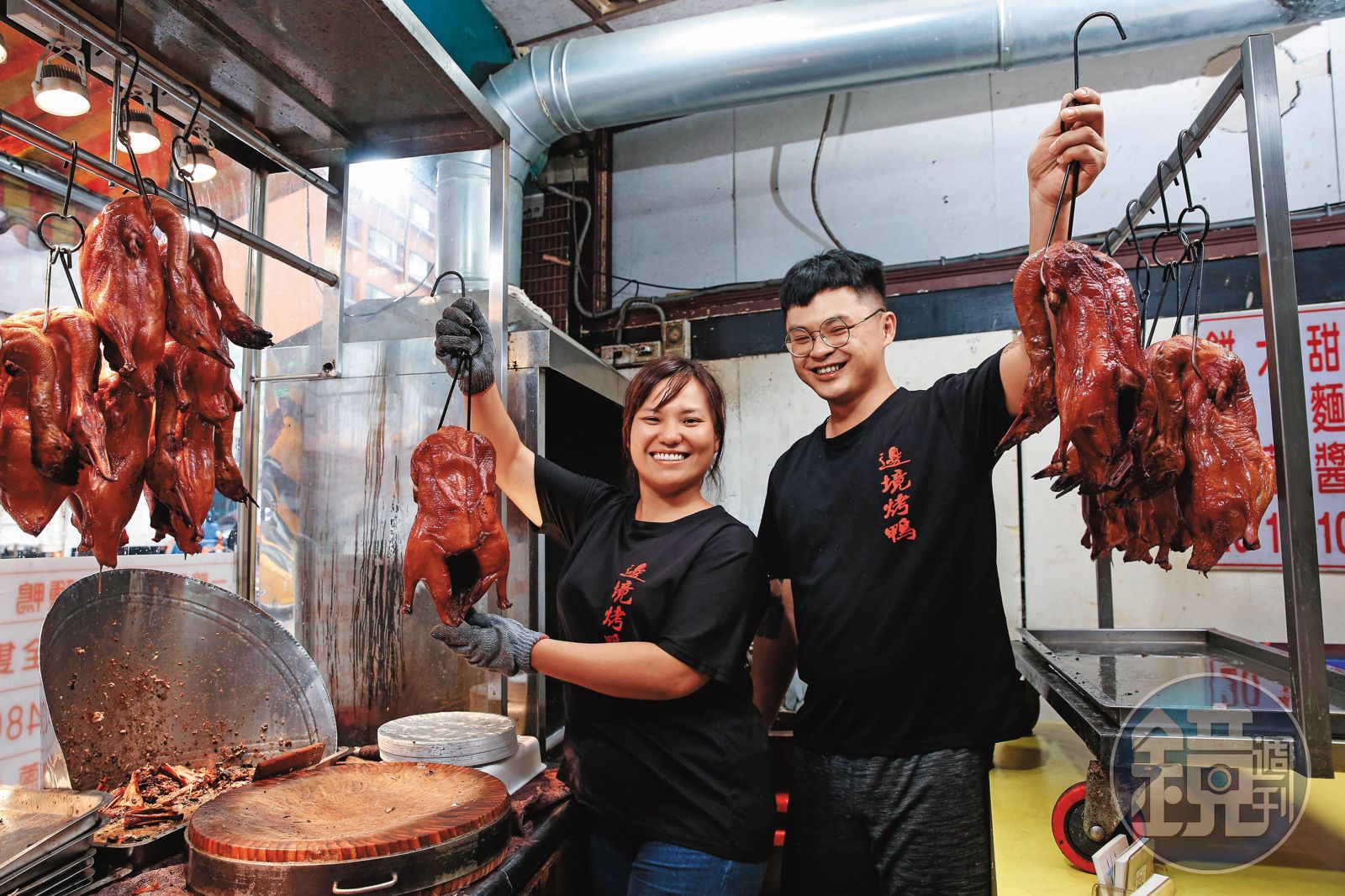 冷冽的冬日,邊境烤鴨老闆劉家文一手提鴨,一手舀起用麥芽糖調製的滾燙皮水澆淋全鴨,眼鏡被熱氣蒸得起霧,他卻熟悉得彷彿閉著眼睛都能完成,額上盡是豆大汗珠,不忘老王賣瓜自稱:「這行沒有SOP,天氣溼度一變化,就要自己調整工序時間長短,我們烤鴨師傅是很值錢的。」