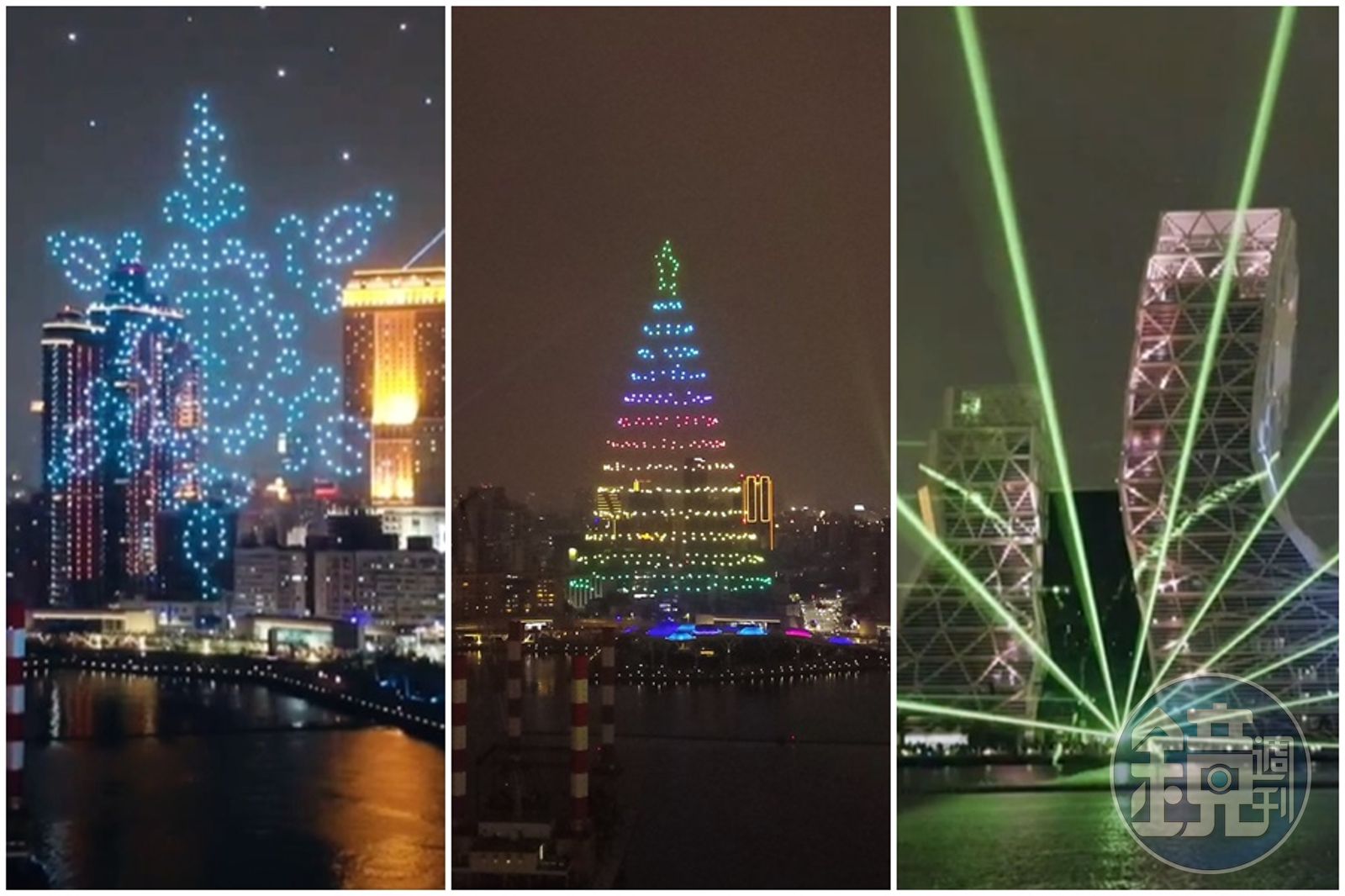 高雄「2021跨百光年」活動在昨晚(24日)平安夜登場,由500台無人機展演揭開序幕,造出的3D耶誕樹尤其絢麗、廣受好評,讓市長陳其邁下令加碼,宣布無人機將在平安夜(24日)再次起飛,照亮高雄港灣。