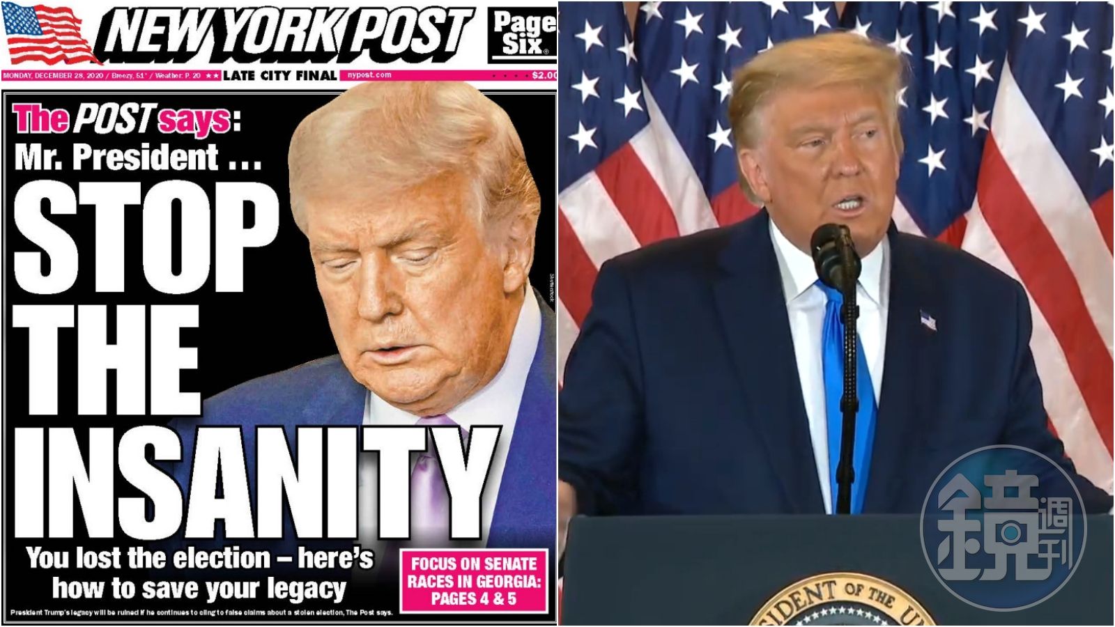 「總統先生,我們了解您為自己的敗選感到憤怒,但若繼續朝這個方向走下去,將會有毀滅性的結果。」《紐郵》說,他們願意繼續為川普提供支持,但若川普想鞏固自己的影響力,或為將來的東山再起打下基礎,現在該做的是化悲憤為力量。