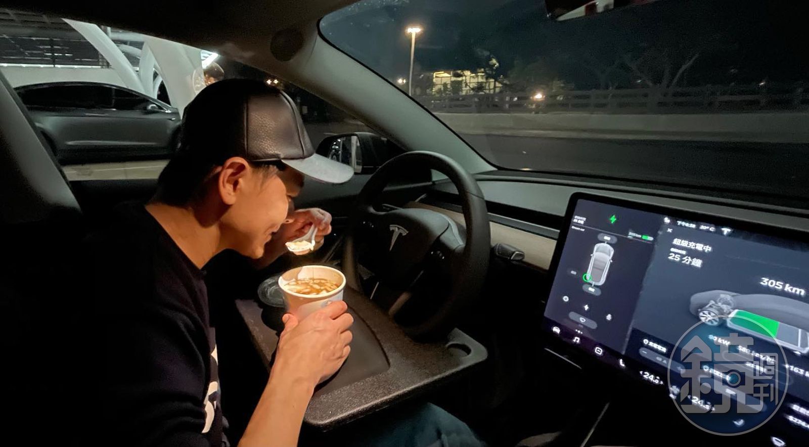 林志穎熱愛賽車,之前好友楊秀蓉的直播中,林志穎家中客廳竟停放一台F1法拉利賽車,而昨(29日)他最新的照片中,他坐在車內吃豆花,並寫下「充電的空檔你會做什麼?這時候來碗熱呼呼的豆花很適合」,問題不在豆花,除非這碗豆花可以回春,重點當然在於這輛要充電的車。眼尖的網友由車內的大型螢幕認出來,林志穎的是新車特斯拉Model 3,而照片中的林志穎嘴角還在偷笑。