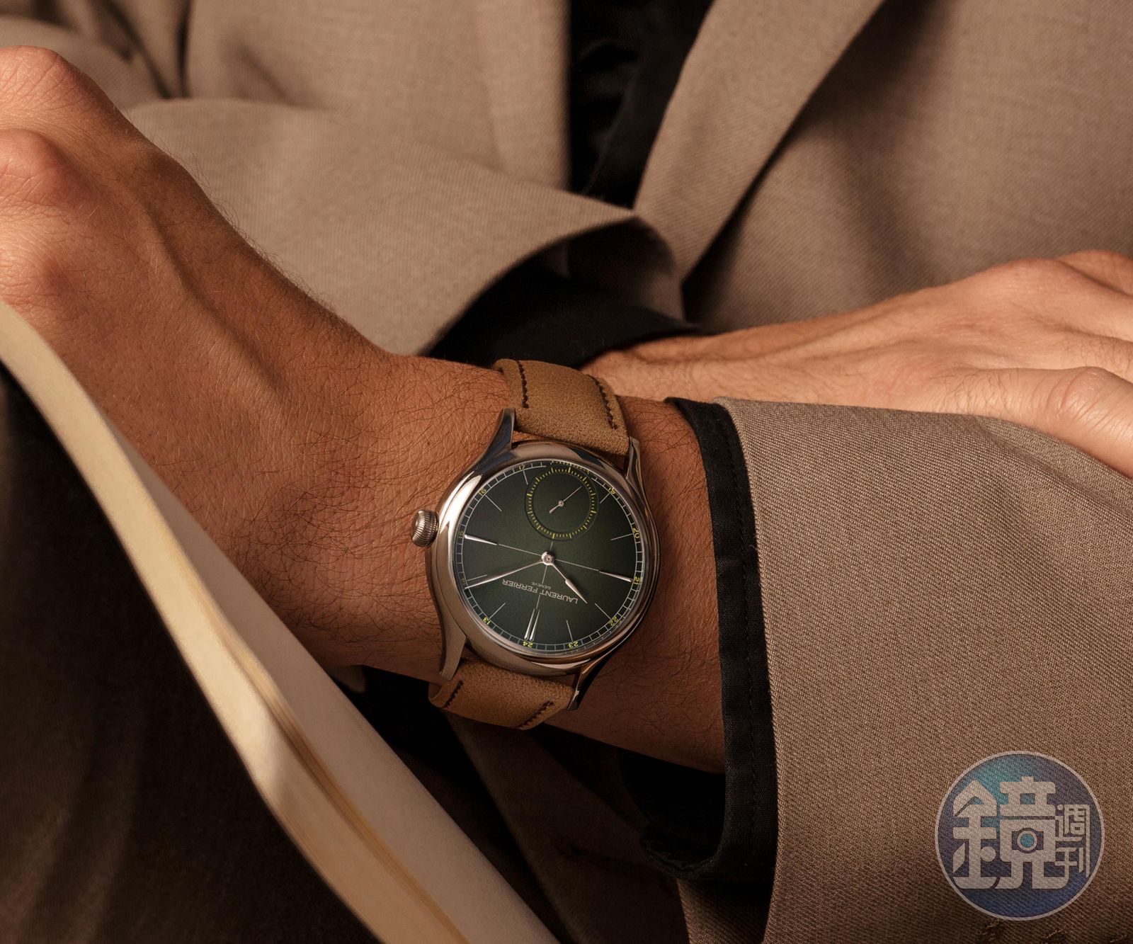 雖然是獨立製錶裡頭的「古典派」,但LAURENT FERRIER近期有越來越多當代的設計出現,像是去年品牌推出的首款運動腕錶:Tourbillon Grand Sport,就是其中一個例子;至於這款新的Classic Origin Green,則是對Classic Origin腕錶的重新演繹,漸層色的綠面配上黃色的刻度,配色相當活潑。至於指針仍然是白金材質,在標誌性特色之外,表現處理也相當細膩,一如LAURENT FERRIER的頂級質感。