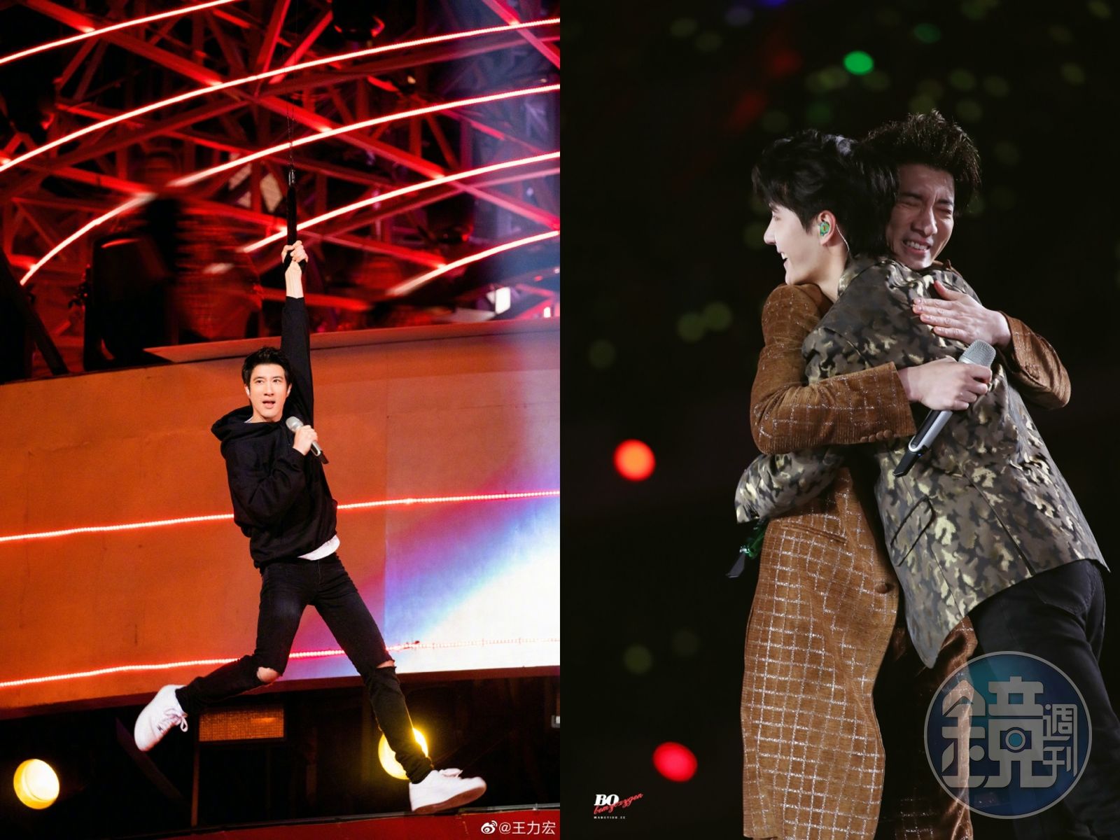 除了與前輩王力宏合作,王一博在跨年晚會表演新歌〈我的世界守則〉,他以吊鋼絲的方式,從約四層樓高的舞台搭景一躍而下,並且在表演中以吊鋼絲的方式「飄移」到各個子舞台,還耍帥地做了空中後滾翻,搭配他精彩的舞台表演,讓現場不少藝人都看得目瞪口呆。人氣爆棚的王一博,前不久才與陳奕迅直播交流,這次又與王力宏合作,連周杰倫也為表演影片按讚,讓粉絲幫敲碗,希望有朝一日能看到王一博與周杰倫同台。